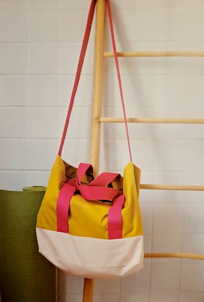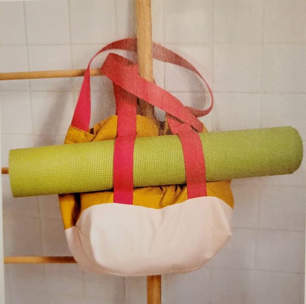 Je craque pour le sac à sangles, il se ferme à l’aide d’un bouton-pression aimanté. Ces jolies sangles contrastée permettent d’emmener le tapis de gym roulé. Il comporte une poche intérieure et peut être porté en bandoulière.