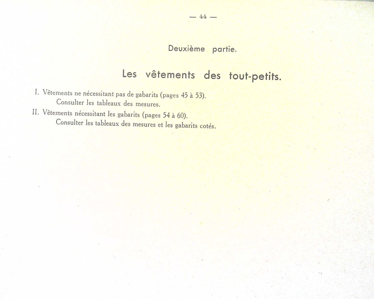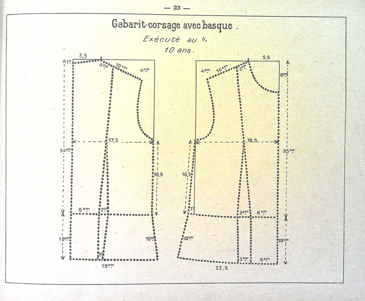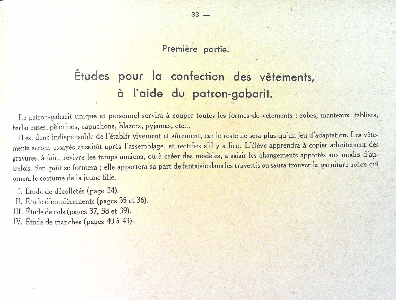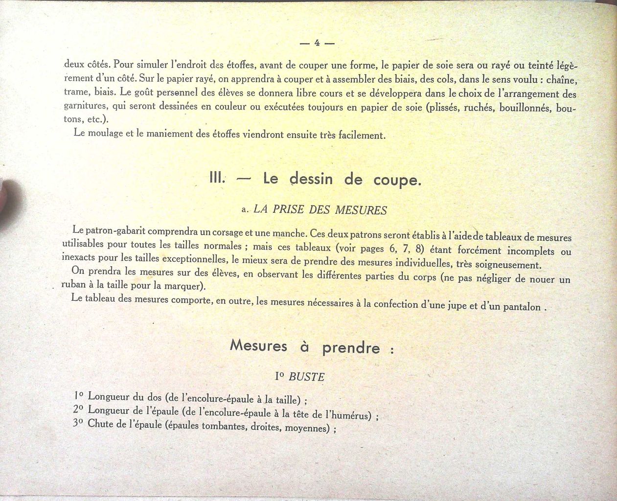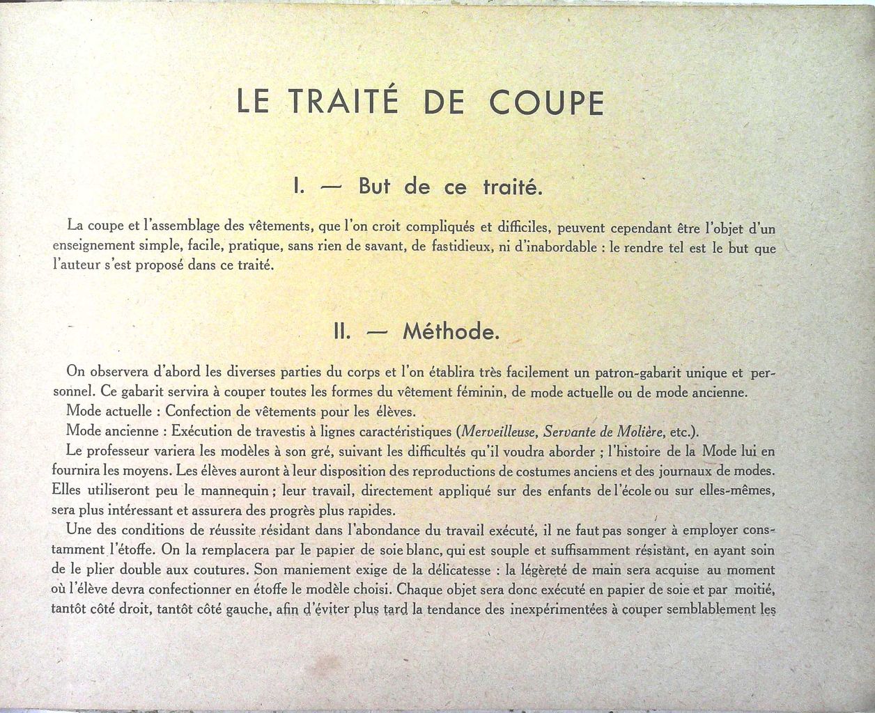 Il date de 1931. Il est intéressant de voir la progression du cours. Au départ, les femmes de l’époque s’entrainent sur du papier de soie qui est fragile et souple. Il permettait de développer la délicatesse attendue d’une couturière. Pour après passer au tissu, en réalisant des vêtements.