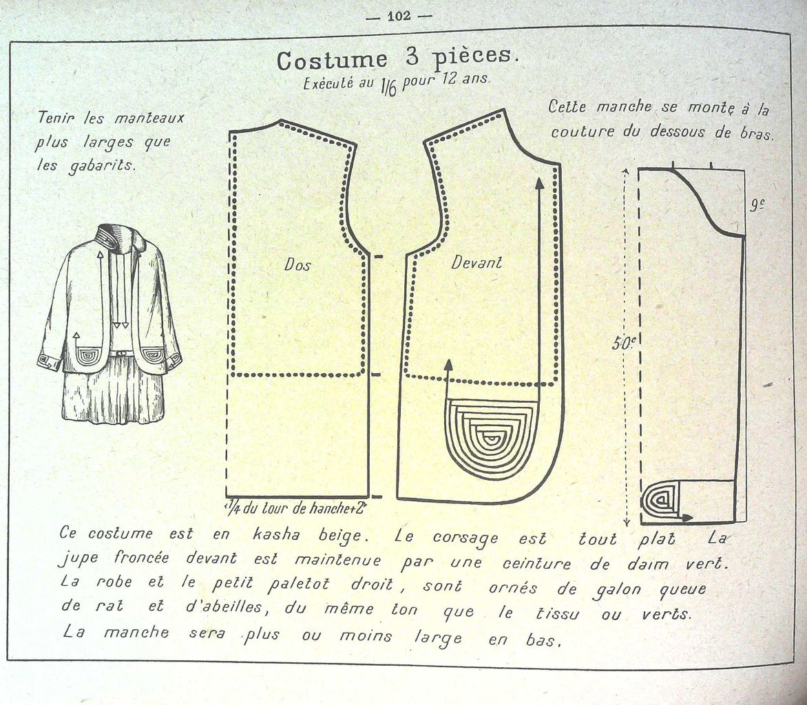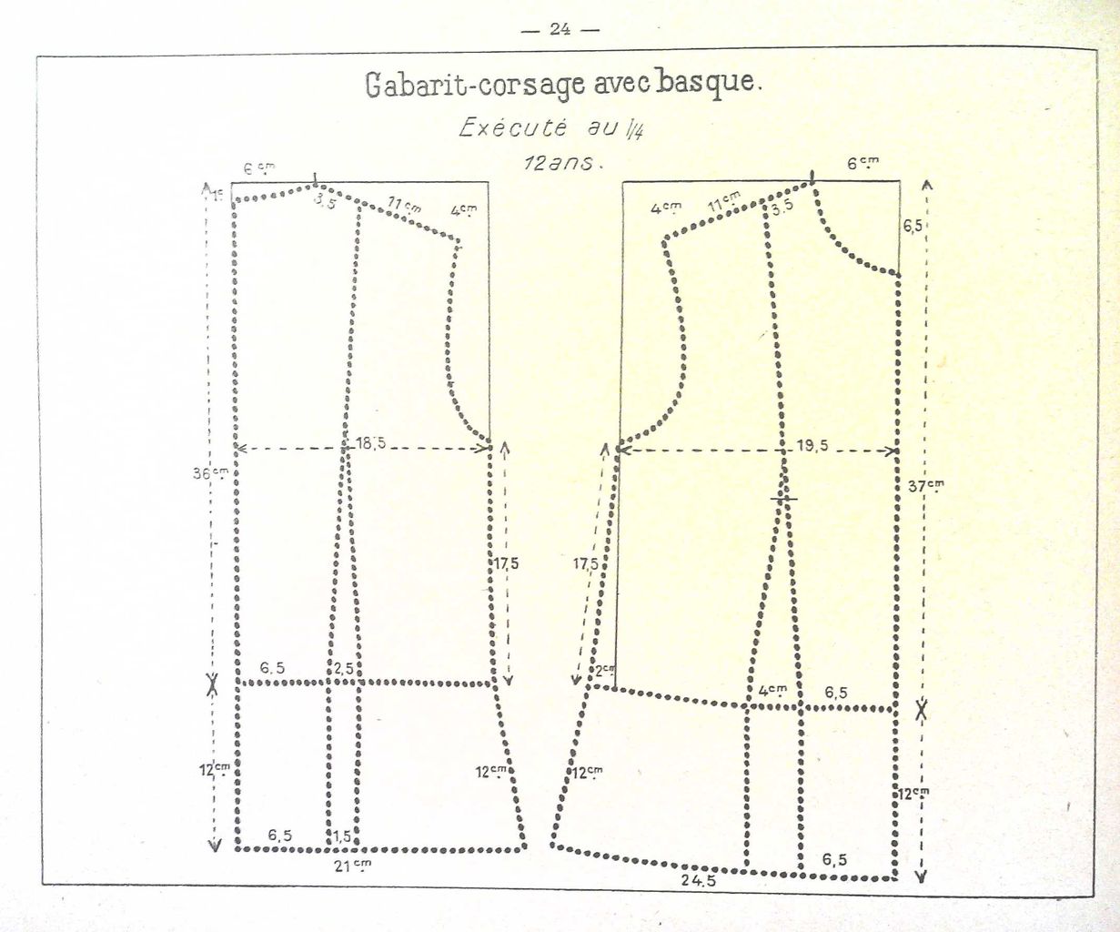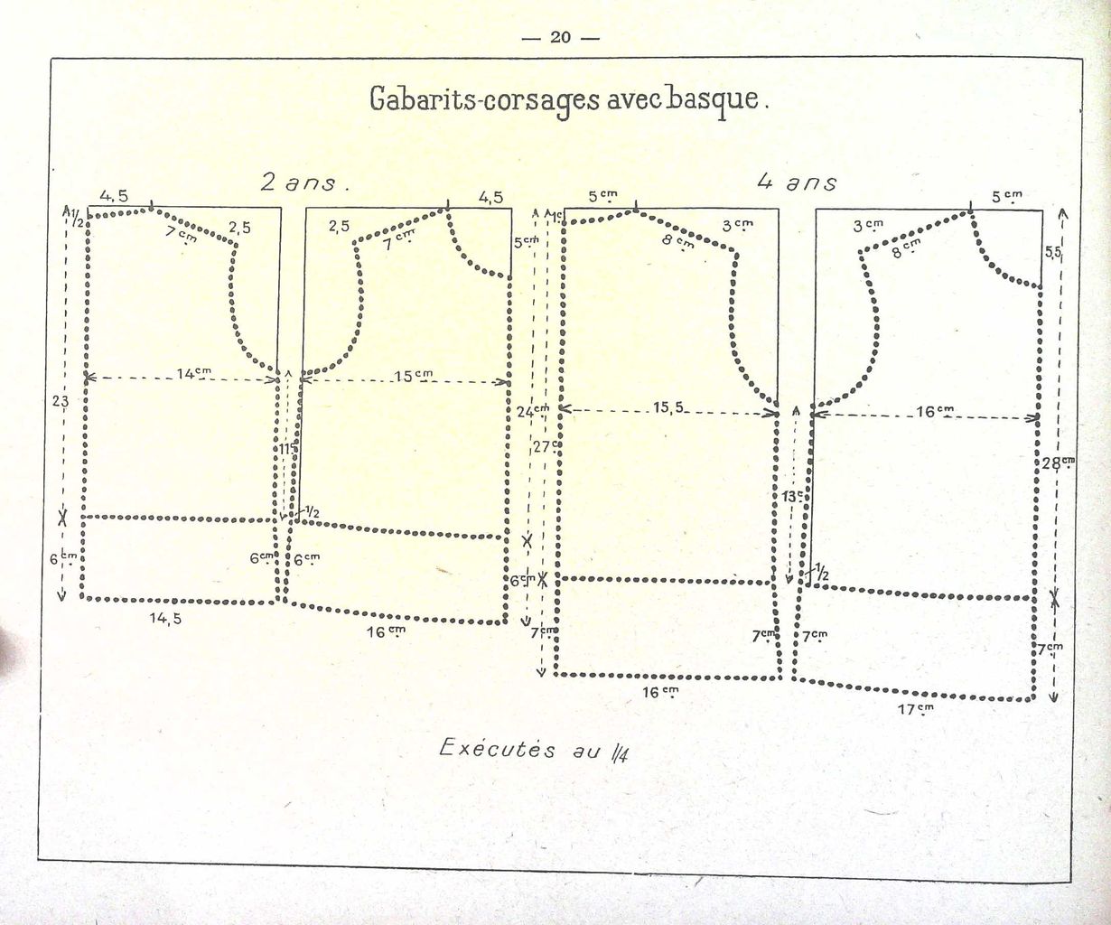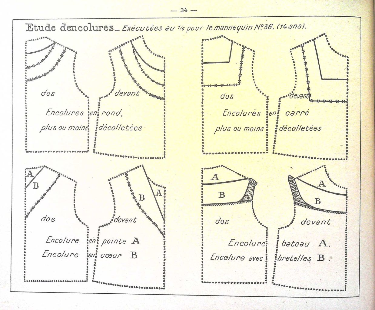 Il date de 1931. Il est intéressant de voir la progression du cours. Au départ, les femmes de l’époque s’entrainent sur du papier de soie qui est fragile et souple. Il permettait de développer la délicatesse attendue d’une couturière. Pour après passer au tissu, en réalisant des vêtements.