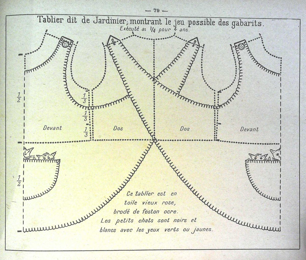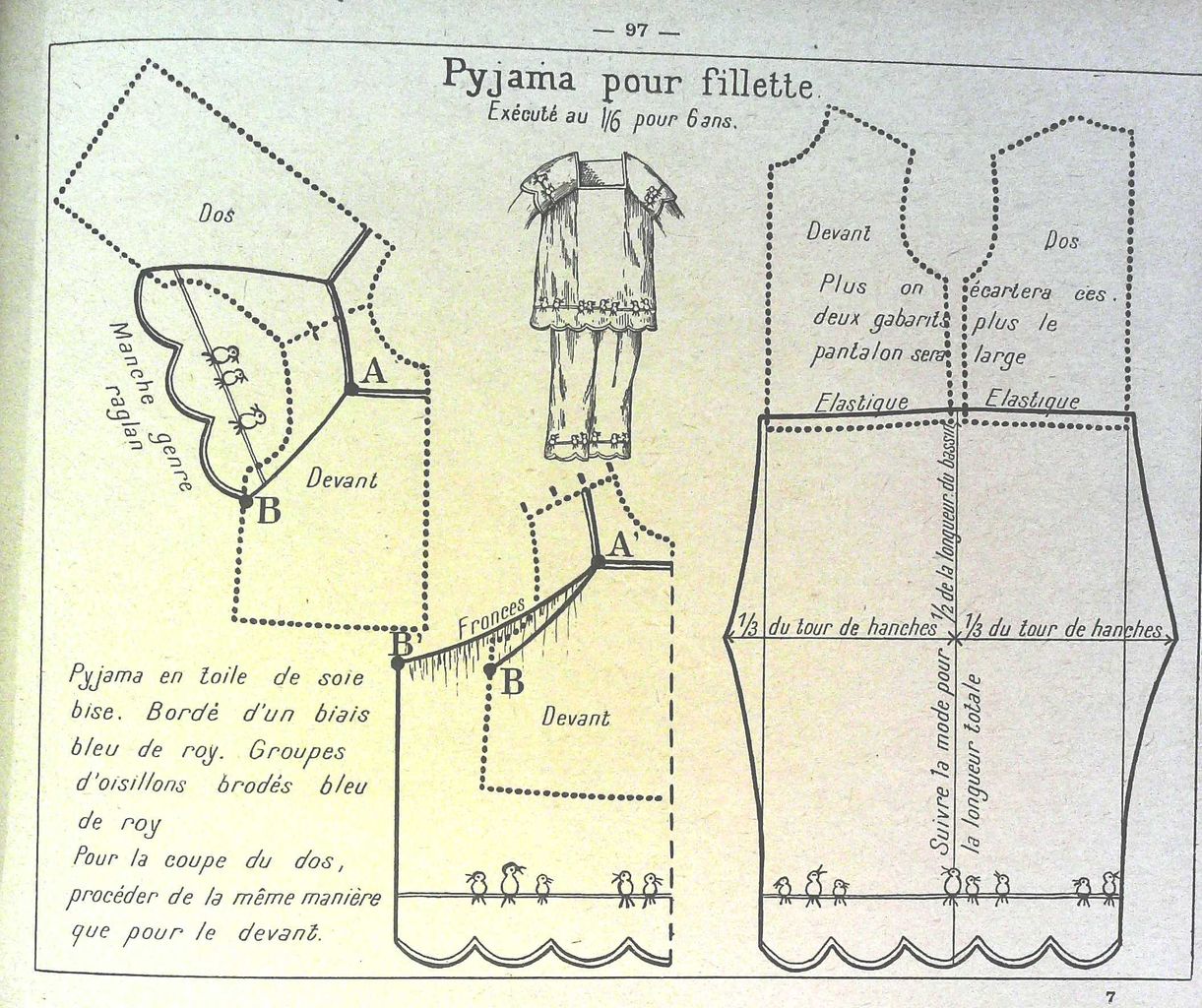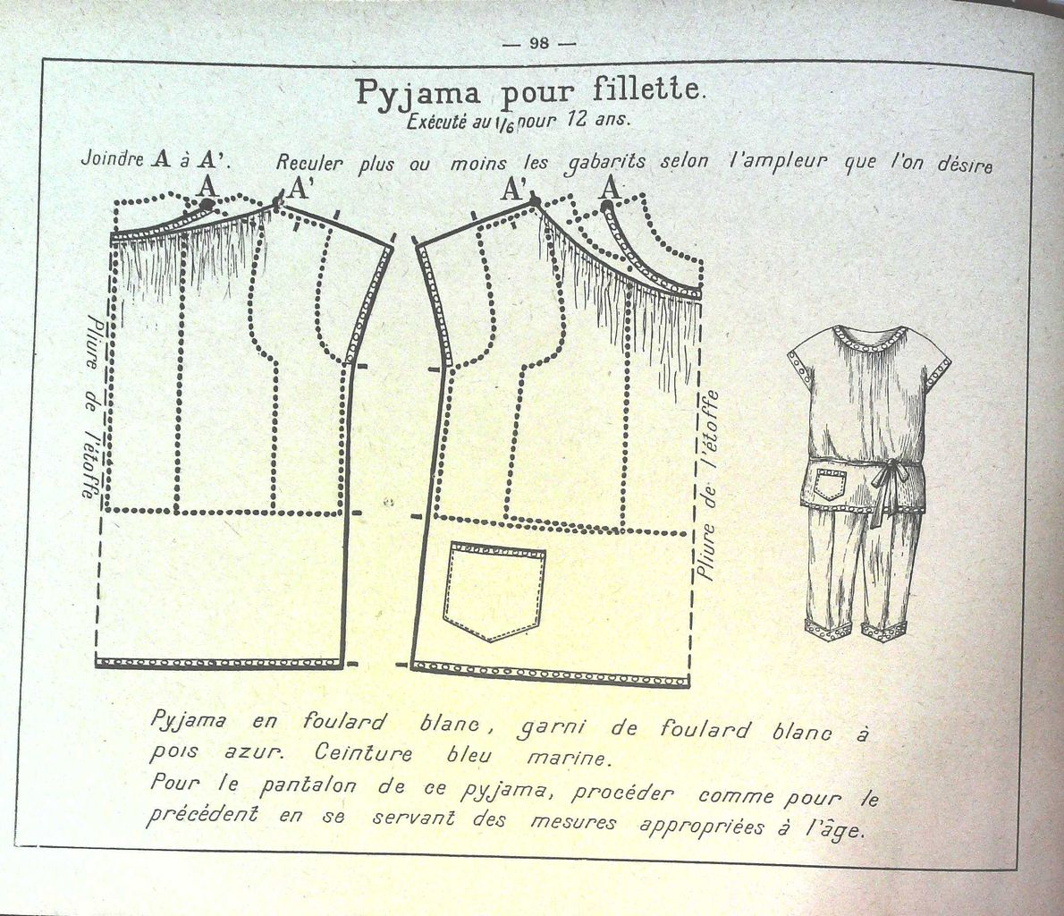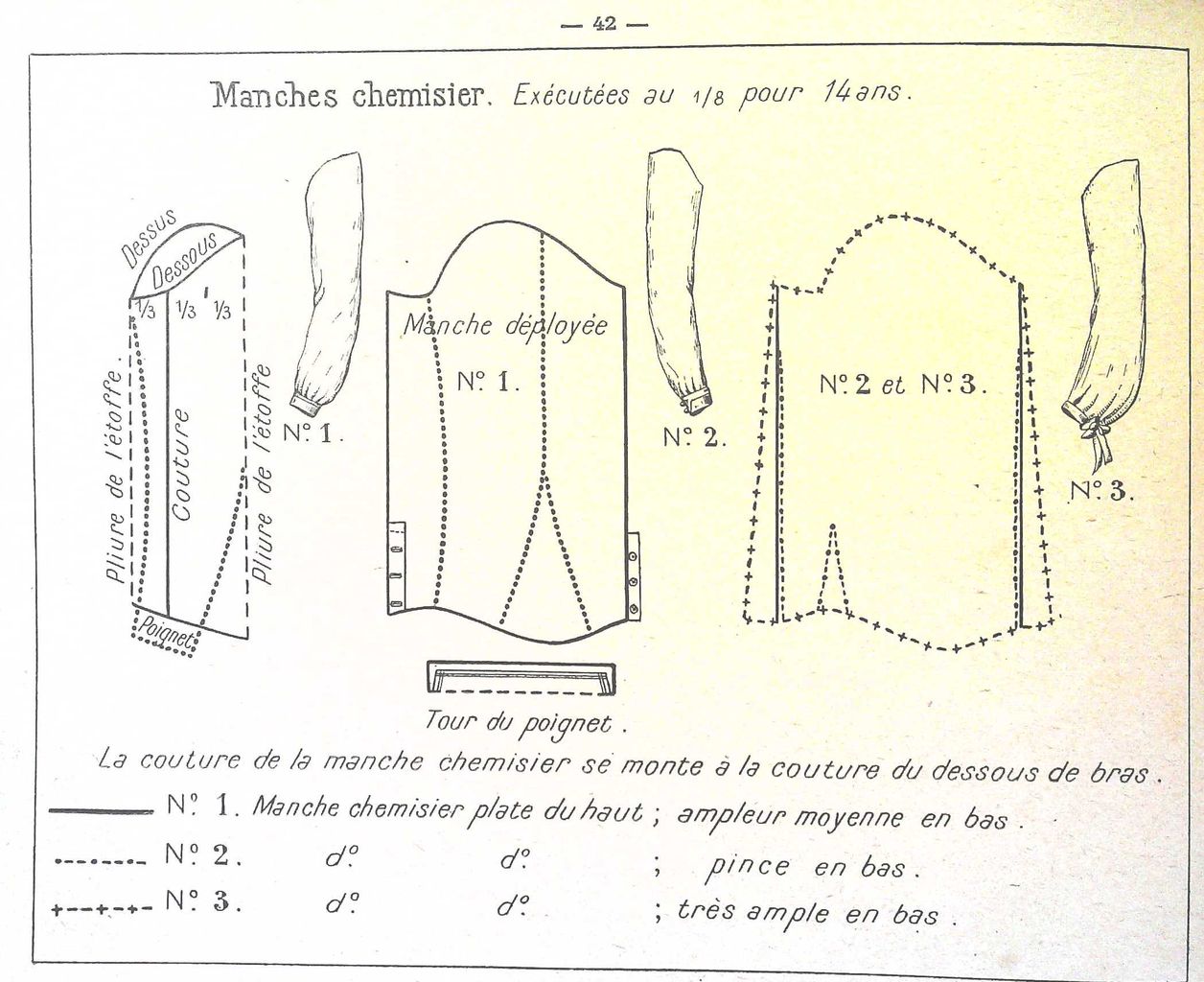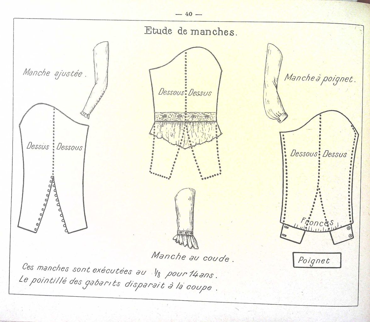 Il date de 1931. Il est intéressant de voir la progression du cours. Au départ, les femmes de l’époque s’entrainent sur du papier de soie qui est fragile et souple. Il permettait de développer la délicatesse attendue d’une couturière. Pour après passer au tissu, en réalisant des vêtements.