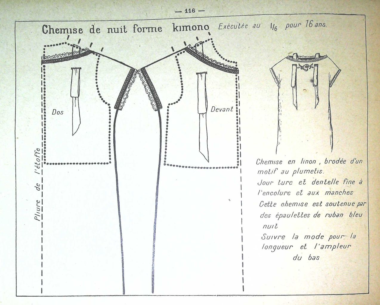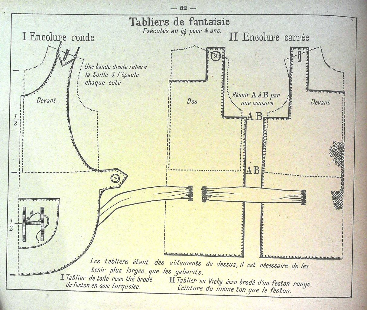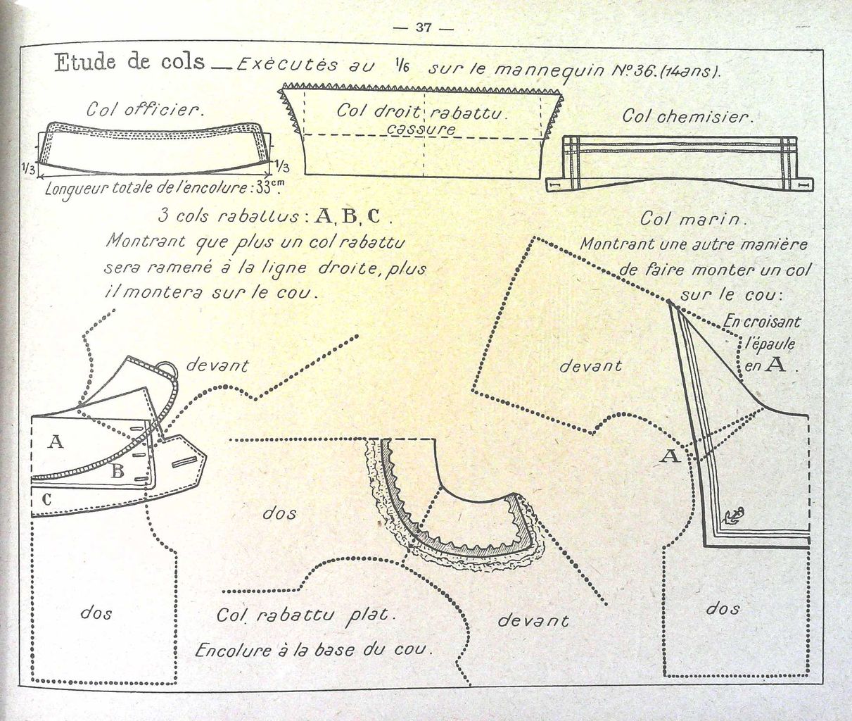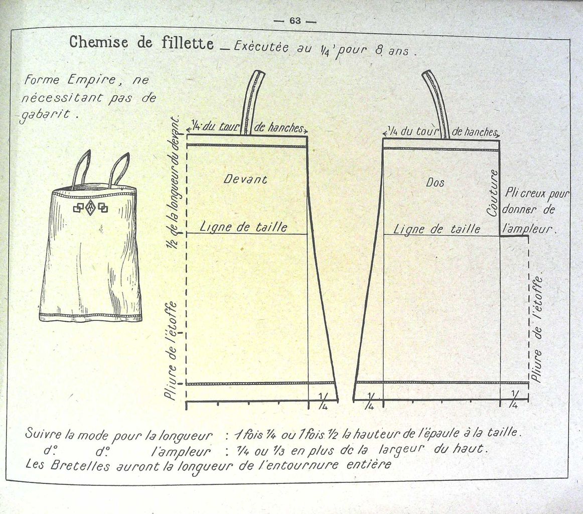 Il date de 1931. Il est intéressant de voir la progression du cours. Au départ, les femmes de l’époque s’entrainent sur du papier de soie qui est fragile et souple. Il permettait de développer la délicatesse attendue d’une couturière. Pour après passer au tissu, en réalisant des vêtements.
