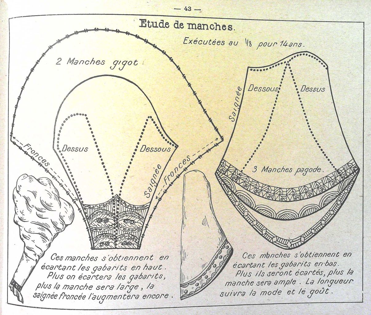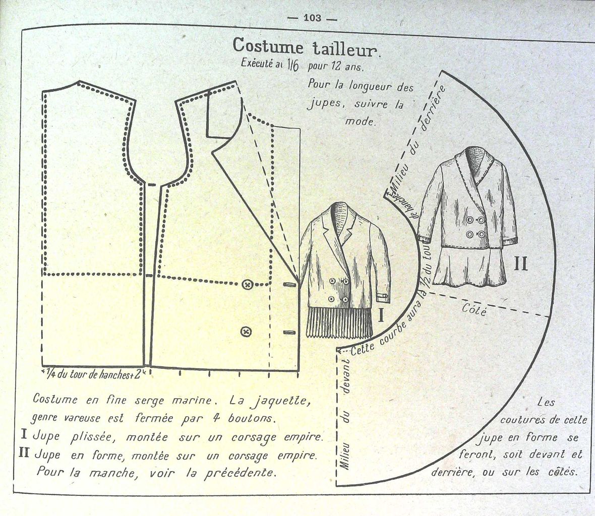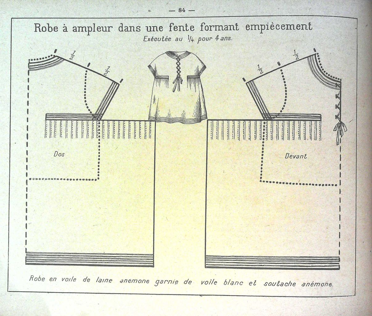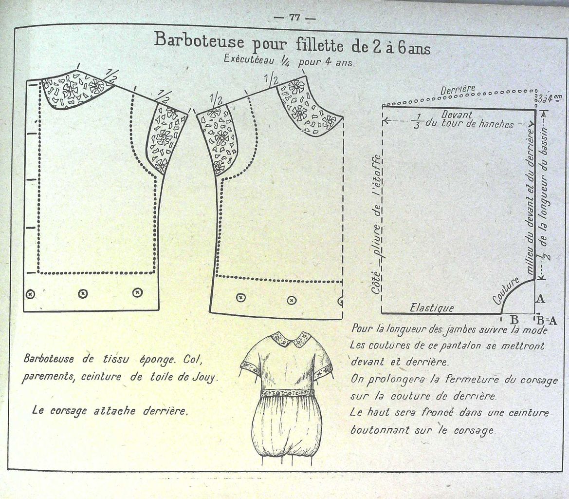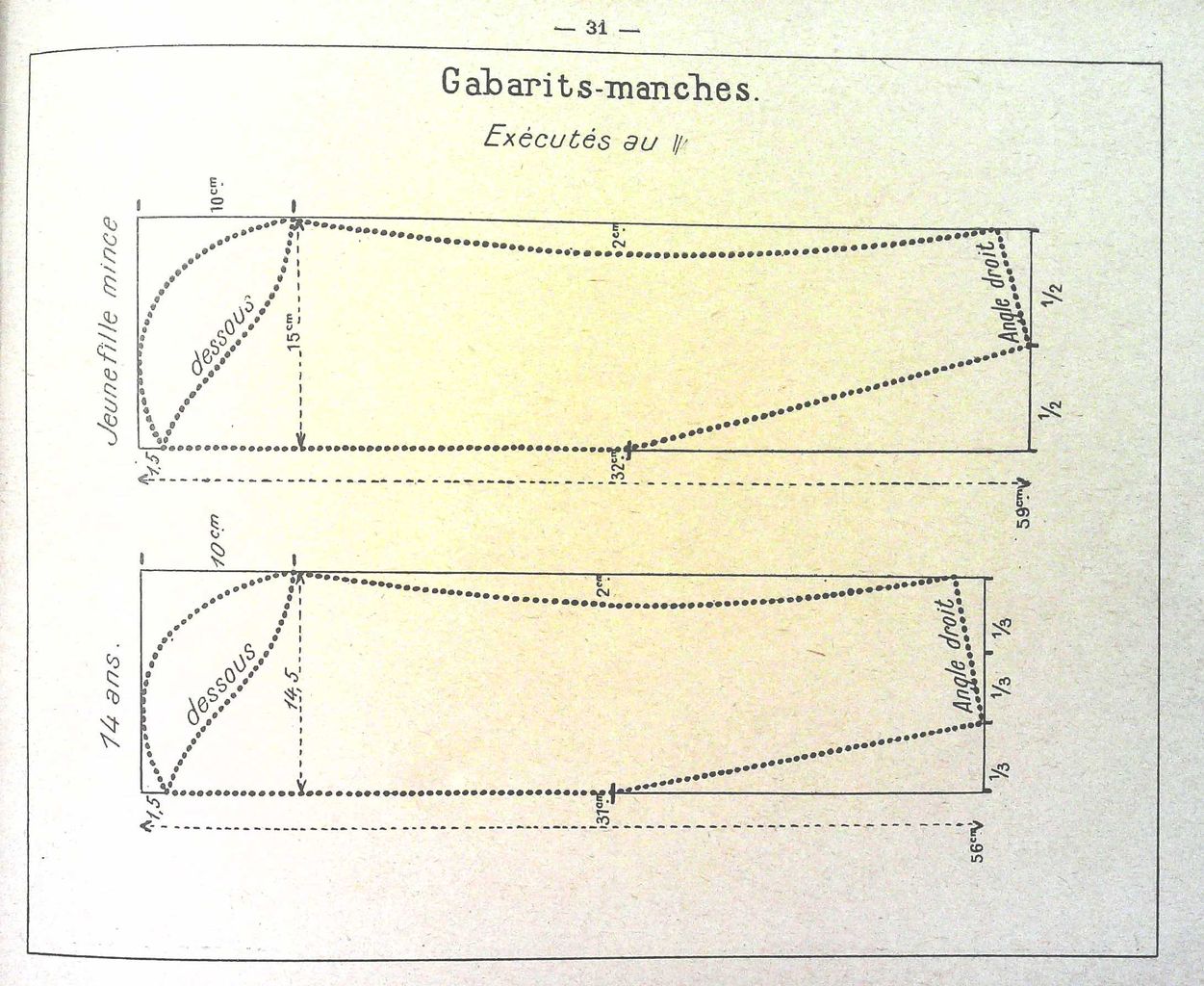 Il date de 1931. Il est intéressant de voir la progression du cours. Au départ, les femmes de l’époque s’entrainent sur du papier de soie qui est fragile et souple. Il permettait de développer la délicatesse attendue d’une couturière. Pour après passer au tissu, en réalisant des vêtements.