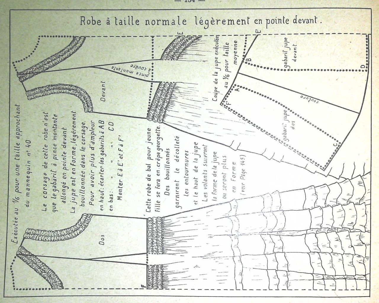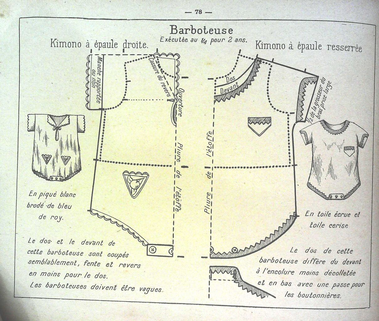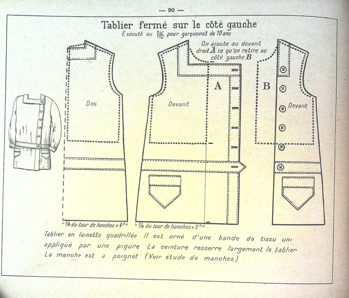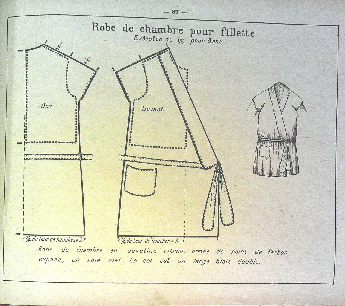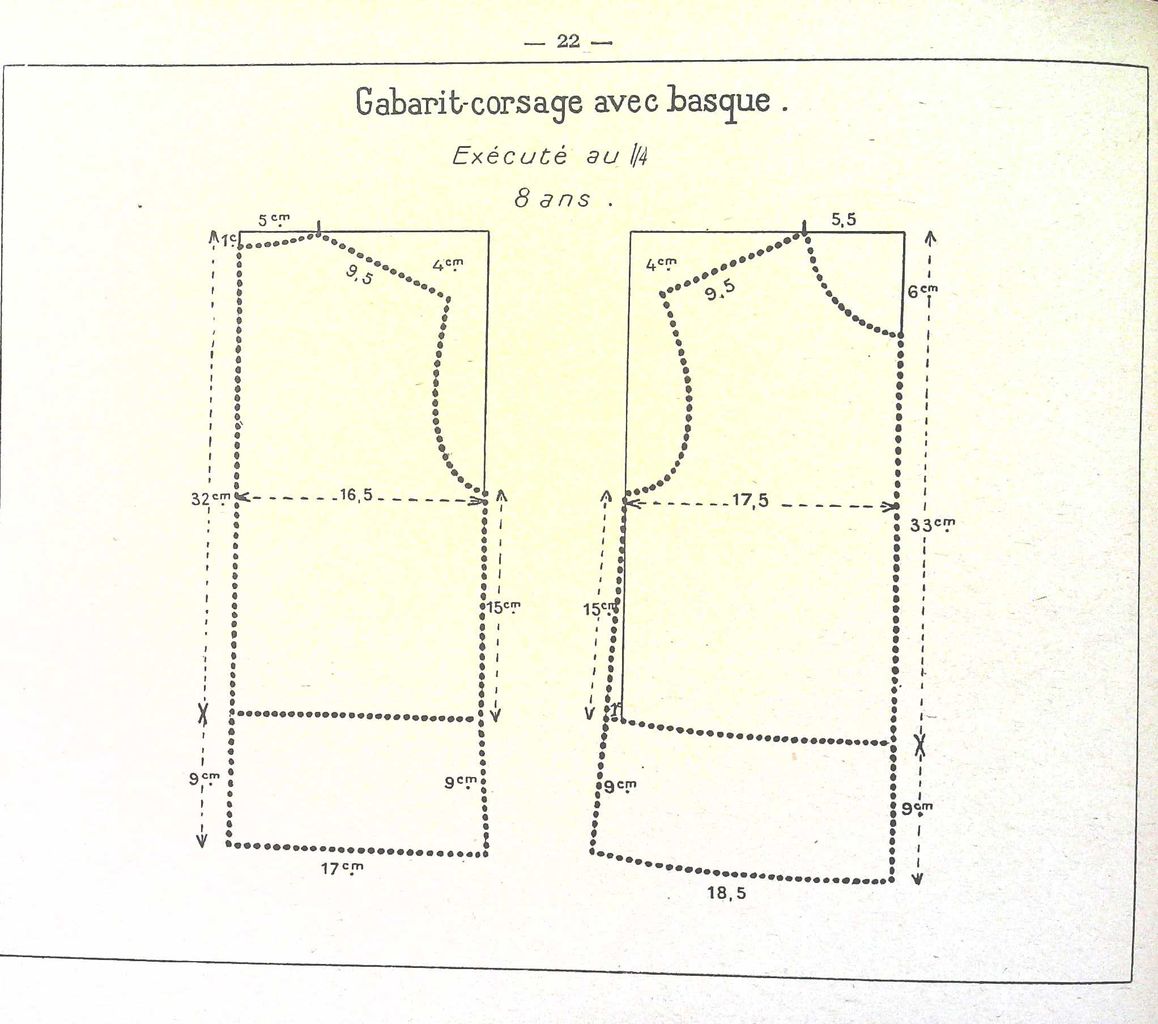 Il date de 1931. Il est intéressant de voir la progression du cours. Au départ, les femmes de l’époque s’entrainent sur du papier de soie qui est fragile et souple. Il permettait de développer la délicatesse attendue d’une couturière. Pour après passer au tissu, en réalisant des vêtements.