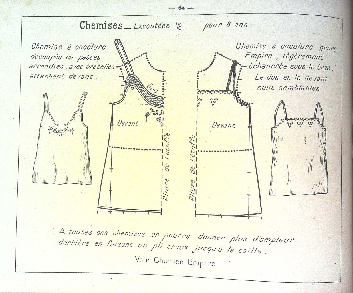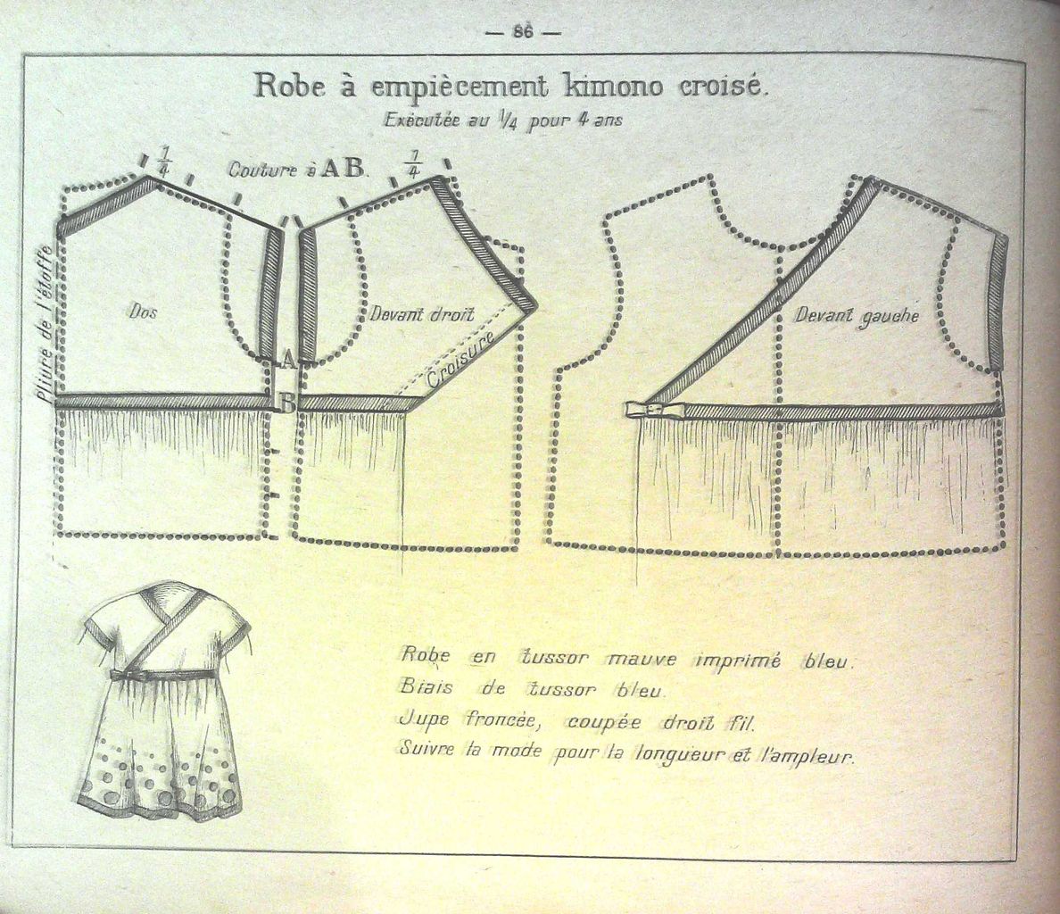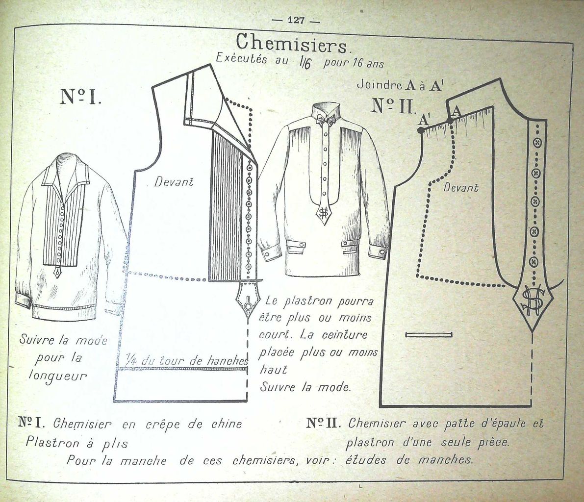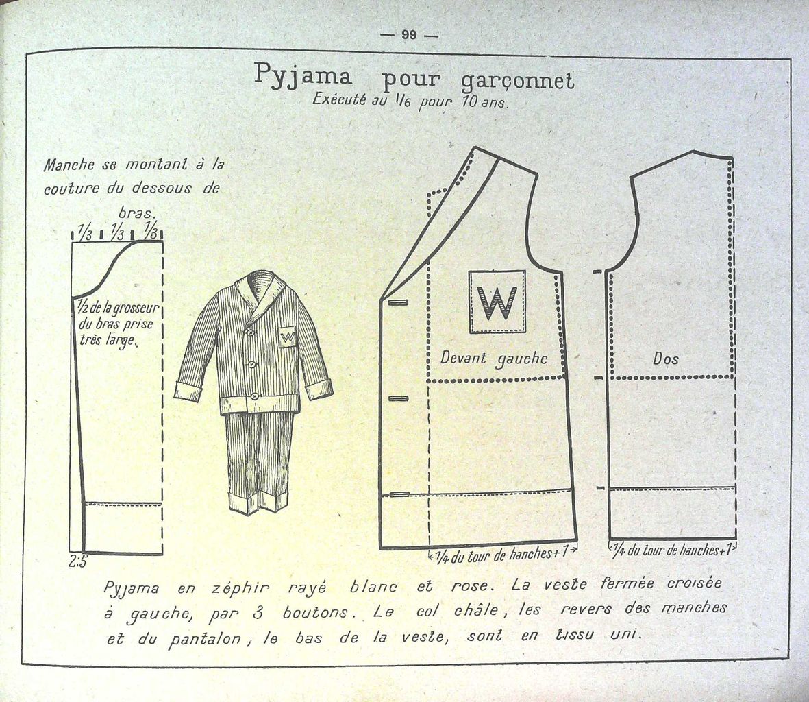 Il date de 1931. Il est intéressant de voir la progression du cours. Au départ, les femmes de l’époque s’entrainent sur du papier de soie qui est fragile et souple. Il permettait de développer la délicatesse attendue d’une couturière. Pour après passer au tissu, en réalisant des vêtements.