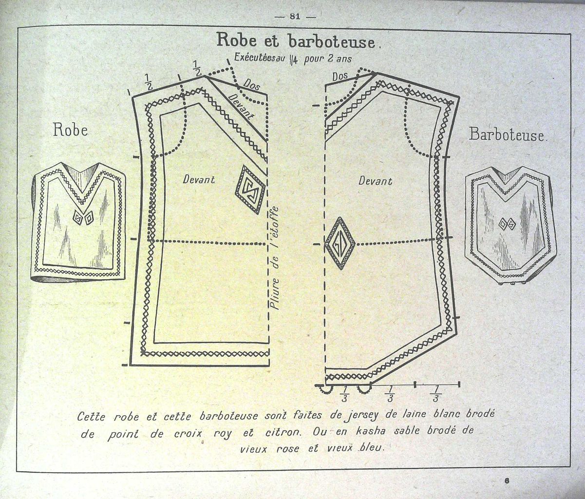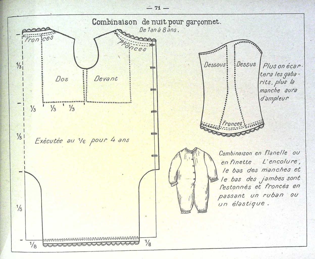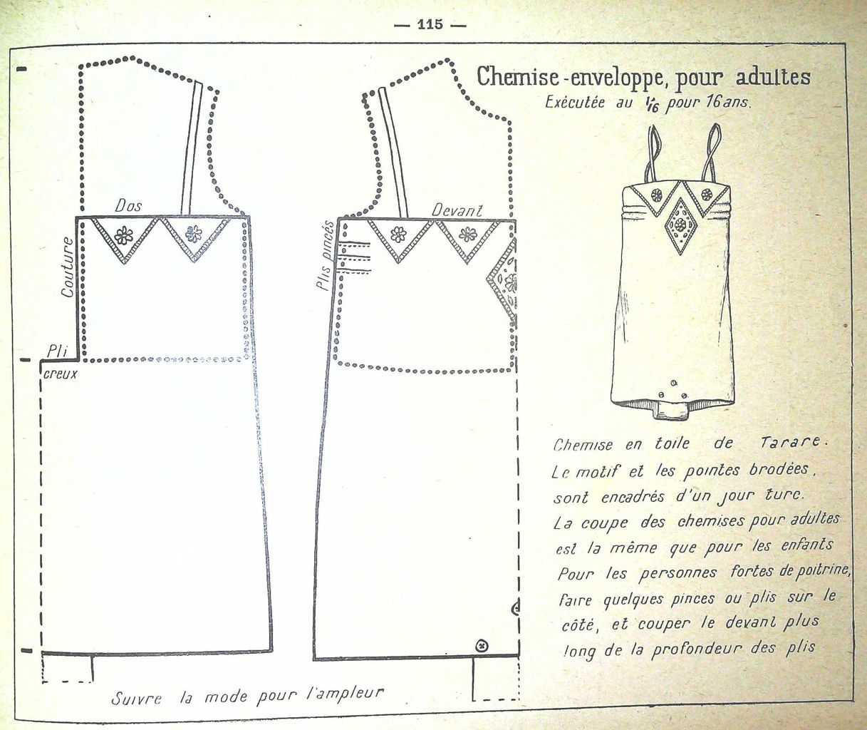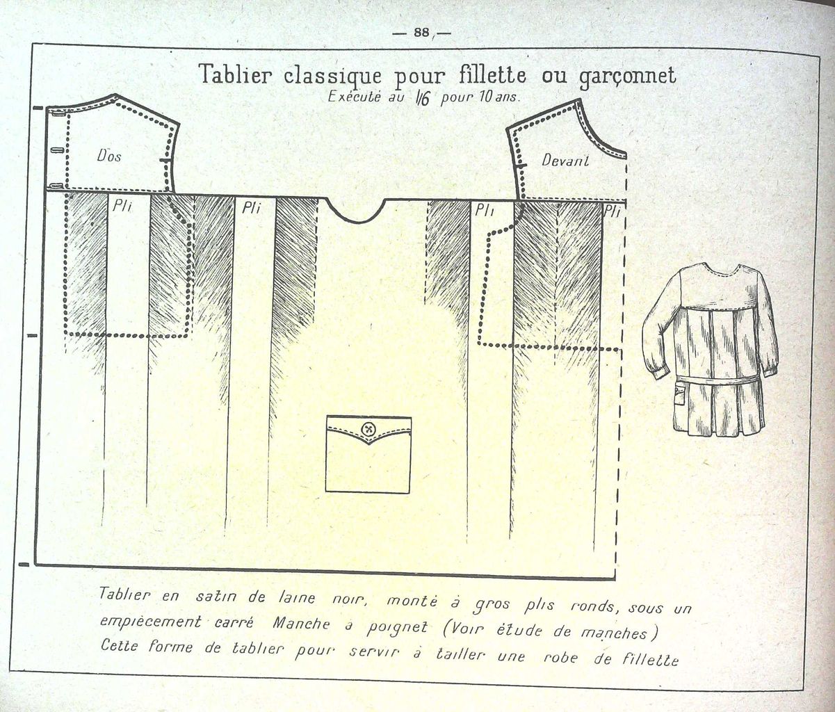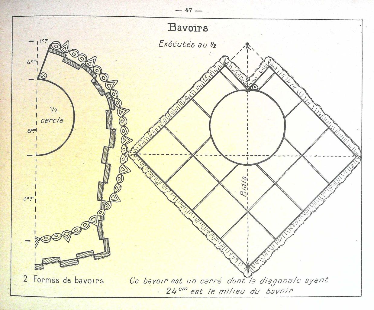 Il date de 1931. Il est intéressant de voir la progression du cours. Au départ, les femmes de l’époque s’entrainent sur du papier de soie qui est fragile et souple. Il permettait de développer la délicatesse attendue d’une couturière. Pour après passer au tissu, en réalisant des vêtements.