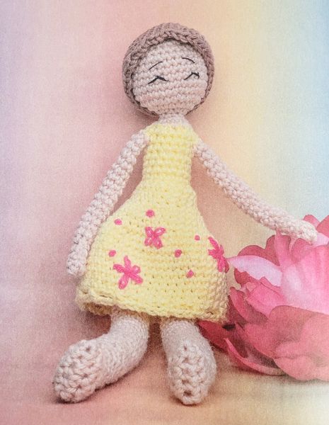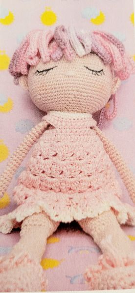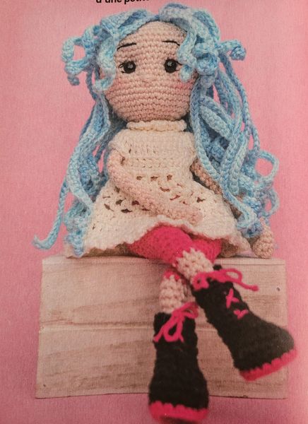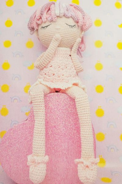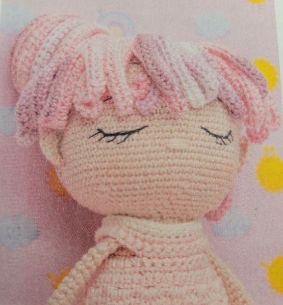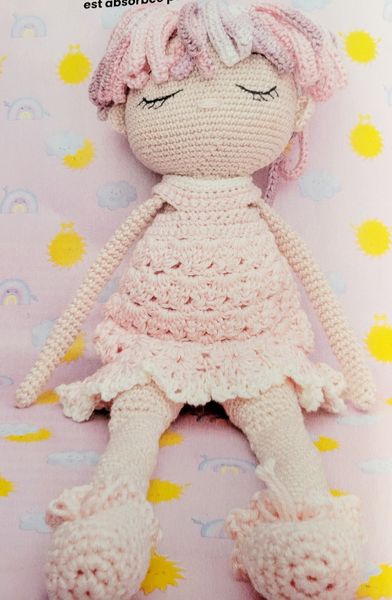 J’adore cette petite poupée romantique et très girly! De rose vêtue et crochetée. Le fil choisi pour ses cheveux ajoute du dynamisme avec son dégradé. Ses yeux dormeurs sont brodés directement.
