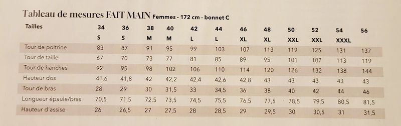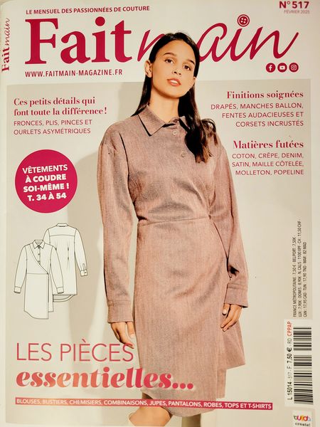 Fait main est la seule revue proposant la totalité de ses patrons dans le même panel de tailles. La même mode pour toutes avec des vêtements allant tous du 34 au 54.