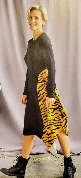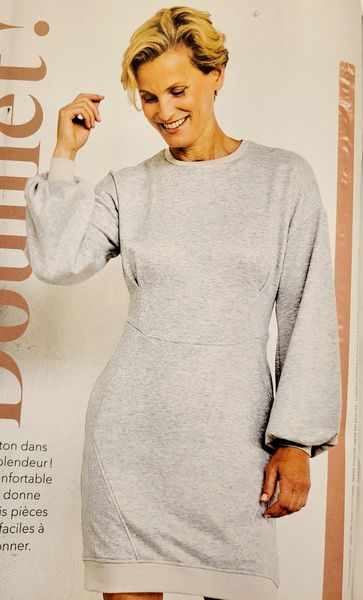 Les robes version sweat ont tendance à se ressembler. Mais je dois reconnaitre que ce modèle avec toutes ses découpes et très original. C’est l’occasion de jouer avec les couleurs, pour les surpiqures, mais aussi le choix du tissu. Personnellement, je trouve que mettre l’accent sur ces découpes structure la silhouette.