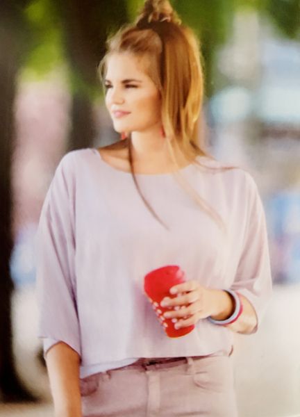 J’étais déjà fan de cet ensemble composé d’une jupe et d’un haut. Ce dernier possède des découpes verticales, façon bustier sur le devant. Les mancherons sont réalisés en dentelle et garnie d’un biais contrastant en bordure. Je lui trouve un petit côté années 90.
