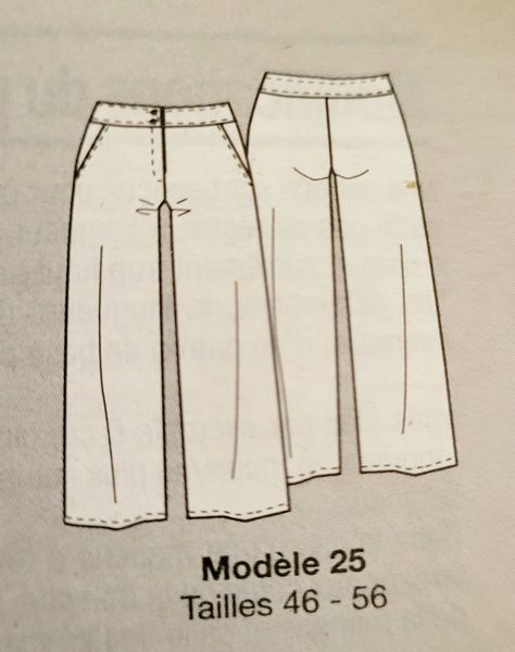 Voici un modèle de pantalon large, avec ceinture sous empiècement. On trouvera des poches italiennes uniquement.