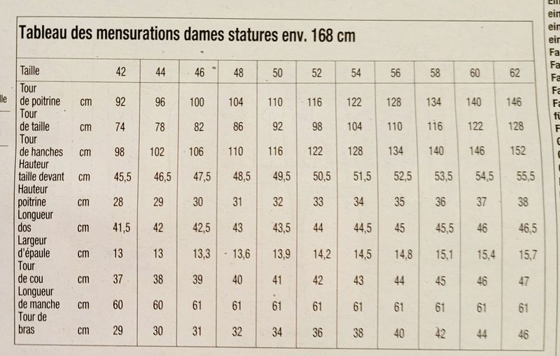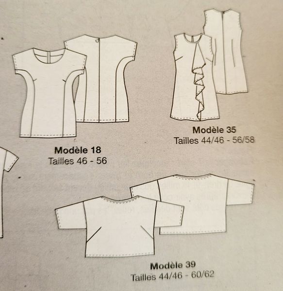 « Belle Mode à Coudre » était un titre proposant des patrons allant loin en tailles comme ici allant jusqu’au 62….