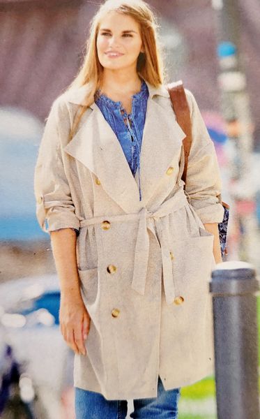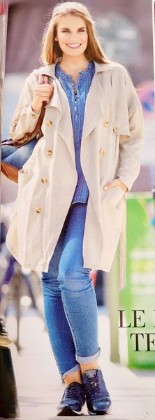 Je n’ai jamais trop été fan des imperméables. Mais, je change d’avis pour ce modèle qui m’a fait m’interroger. Pourquoi ? Tout simplement, car je lui trouve une forme trapèze inversé. Les jeux de découpes autour de la double patte de boutonnage, ou sur les épaules et les manches élèvent le niveau de ce modèle. Il peut se porter avec les manches relevées afin de montrer la doublure. Bien entendu, il possède une ceinture à nouer.