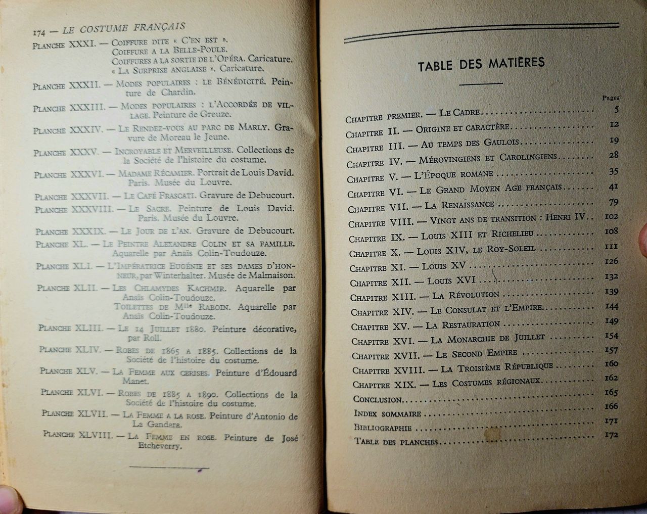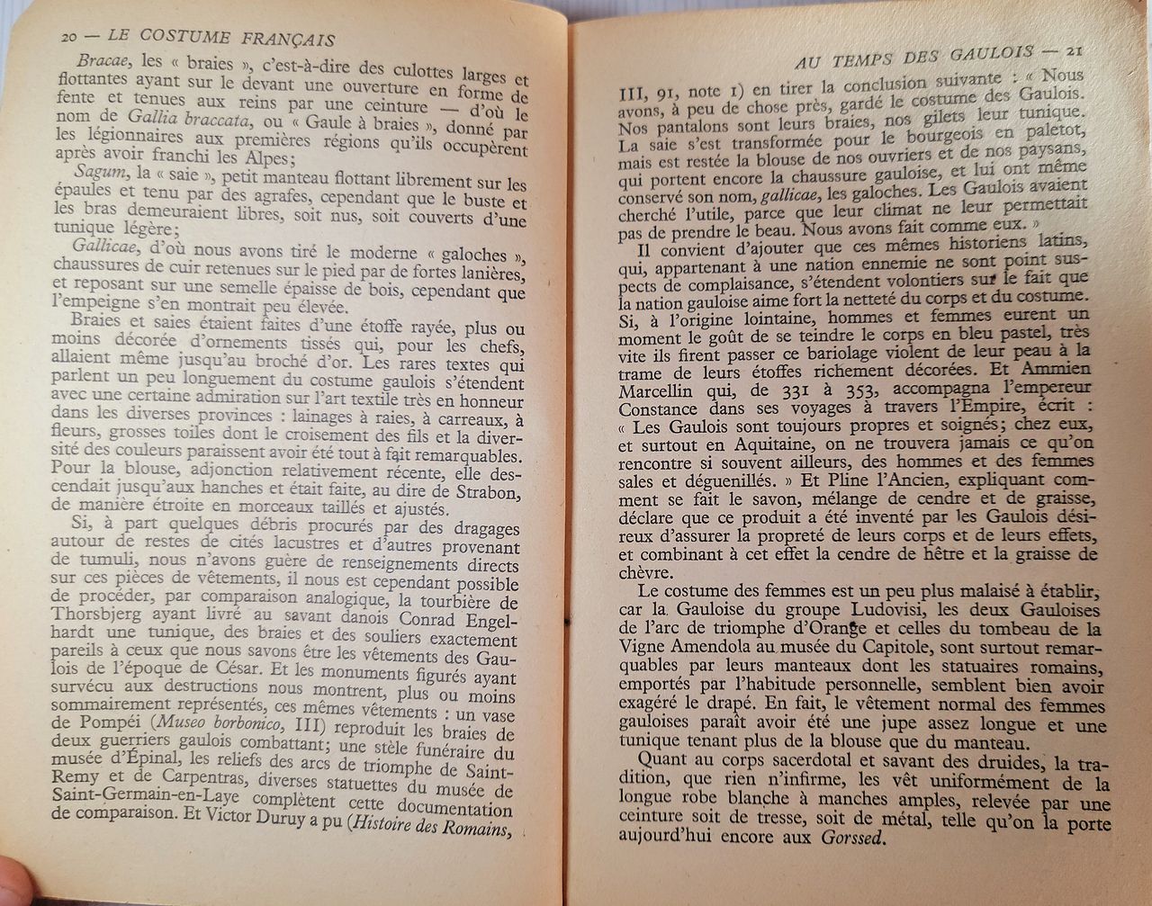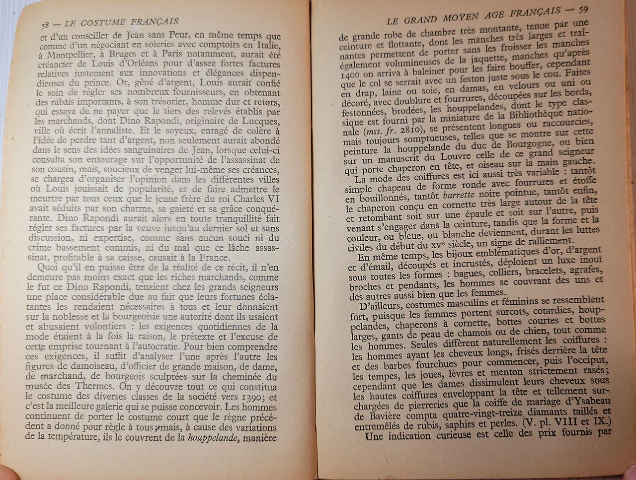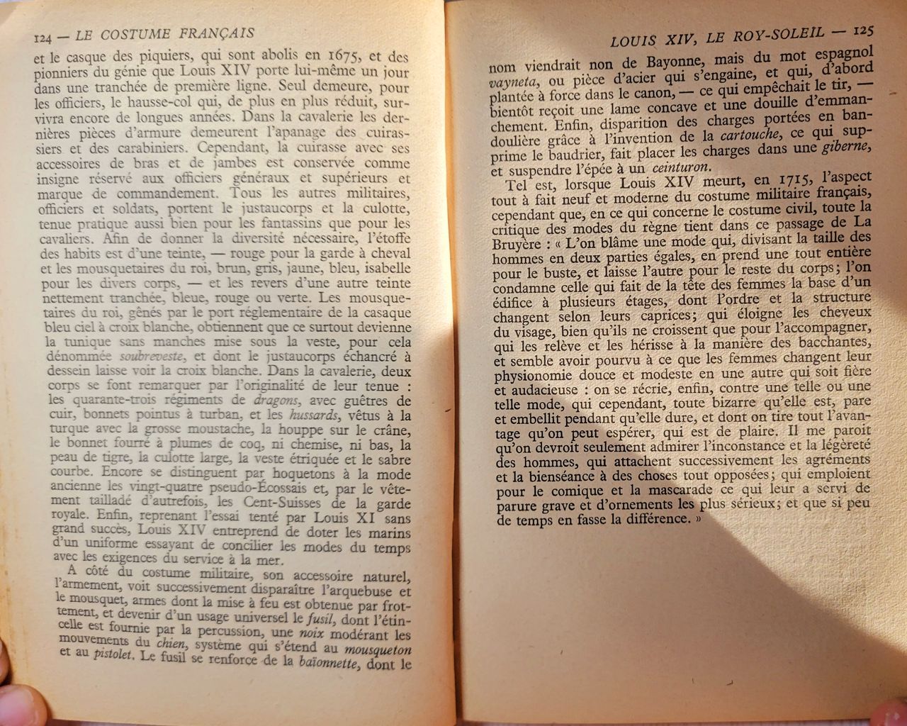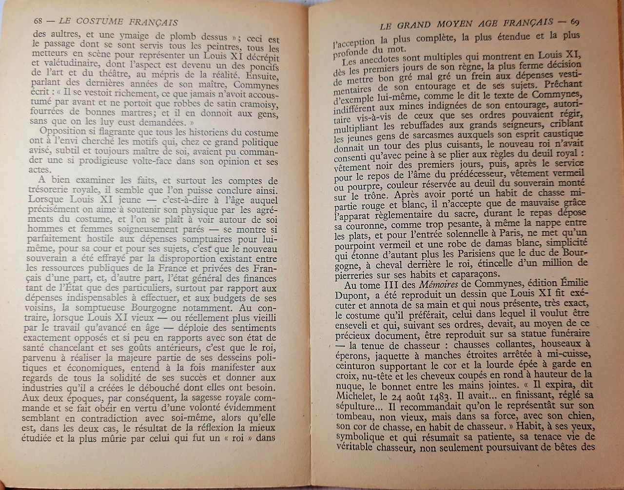 Ce livre intitulé le Costume français va à l’essentiel avec 160 pages de texte et d’illustrations. Le vêtement porté a toujours été influencé par le niveau social, la politique, mais aussi les maladies et le régionalisme. Les différents événements de l’histoire de France ont façonné la mode masculine, mais aussi féminine. Elle rayonna ensuite partout dans les pays voisins avec quelques adaptations.