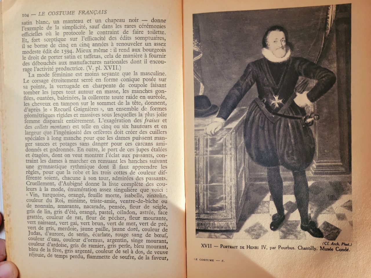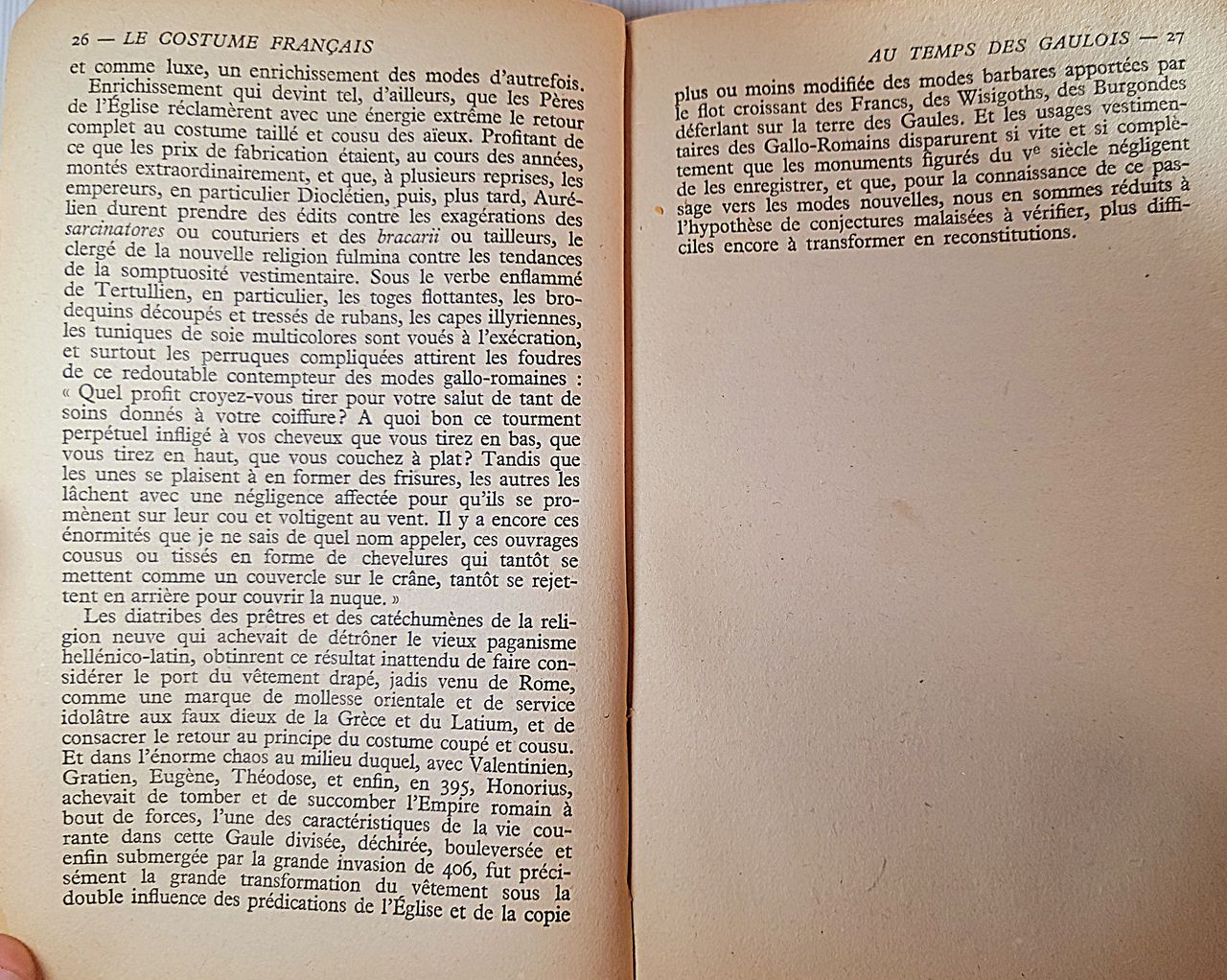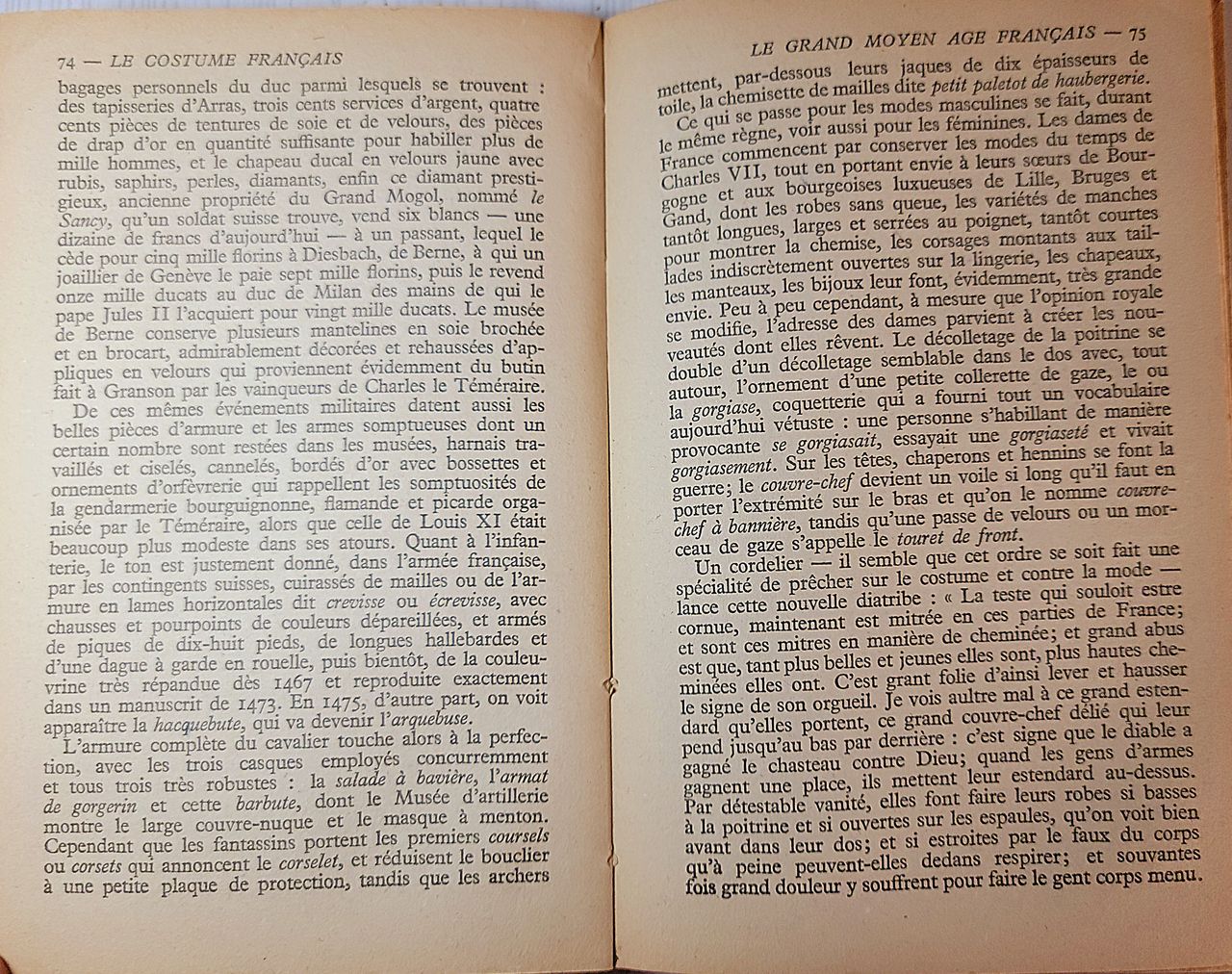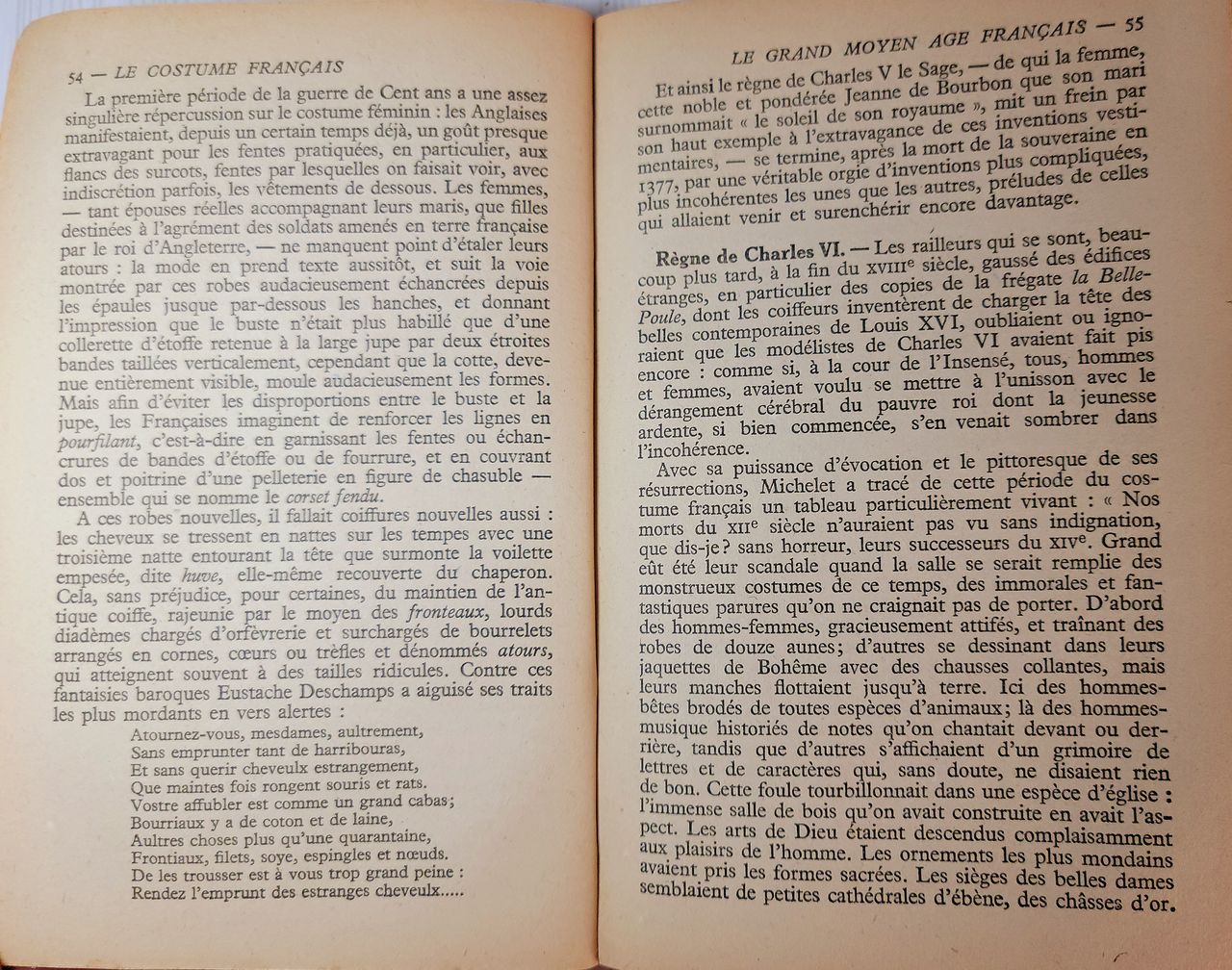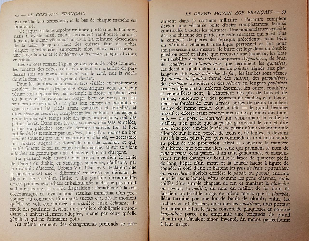 Ce livre intitulé le Costume français va à l’essentiel avec 160 pages de texte et d’illustrations. Le vêtement porté a toujours été influencé par le niveau social, la politique, mais aussi les maladies et le régionalisme. Les différents événements de l’histoire de France ont façonné la mode masculine, mais aussi féminine. Elle rayonna ensuite partout dans les pays voisins avec quelques adaptations.