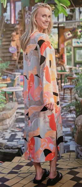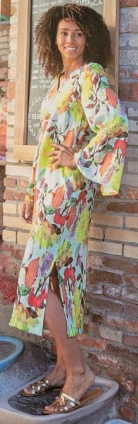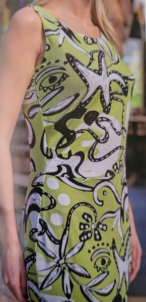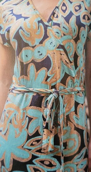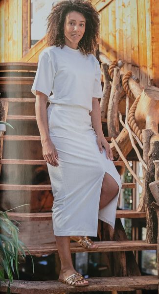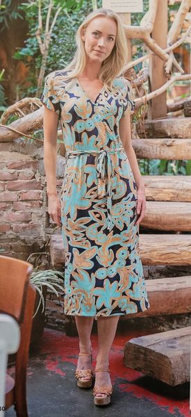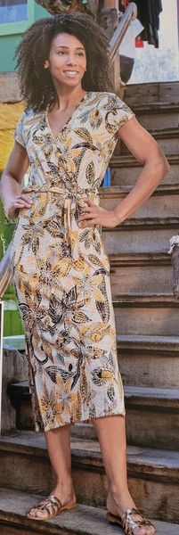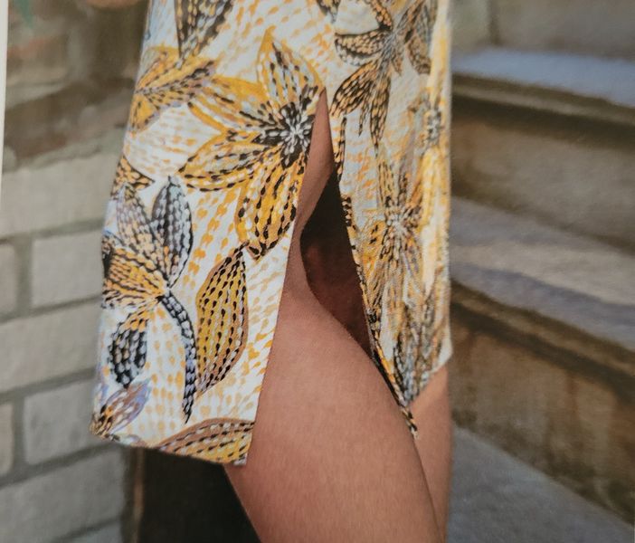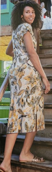Encore une robe, toute simple pour ne pas dire basique. Le haut est croisé façon cache-cœur avec des petits mancherons. La jupe est droite est garnie de fentes des deux côtés.