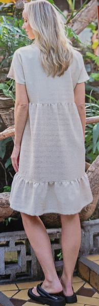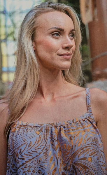 Ce genre de robe est intemporel, et d’un confort inégalé l’été. Choisissez des matières naturelles. Il s’agit d’une robe à bretelle, avec l’encolure et les emmanchures bordées d’un biais. Un volant ajoute un peu d’ampleur au bas de robe.