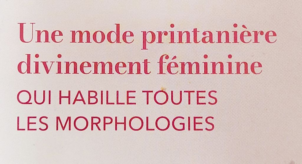 J’aime beaucoup ce bloc ! Il donne envie de connaitre son contenu. On nous annonce une mode féminine, bon, c’est top, c’est un peu ce qu’on cherche et si en plus, elle habille toutes les morphologies, c’est topissime.