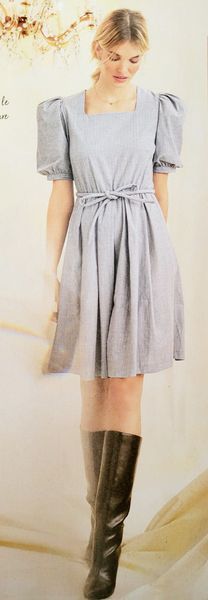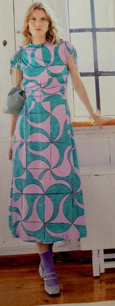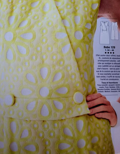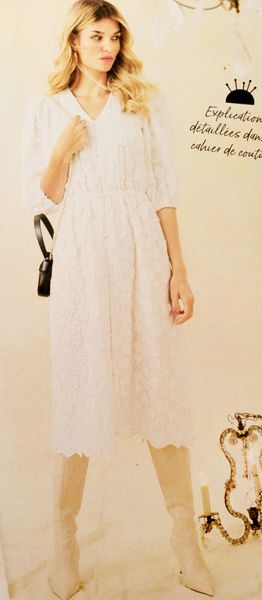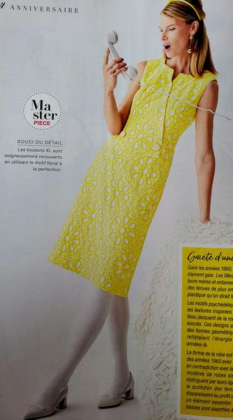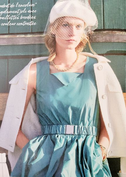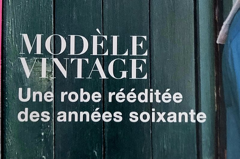 J’adore ce bloc titre, il nous apprend que nous trouverons un modèle rétro, réédition d’un patron sorti dans les années 60. Il s’agit quasiment tout le temps d’une robe comme ici.