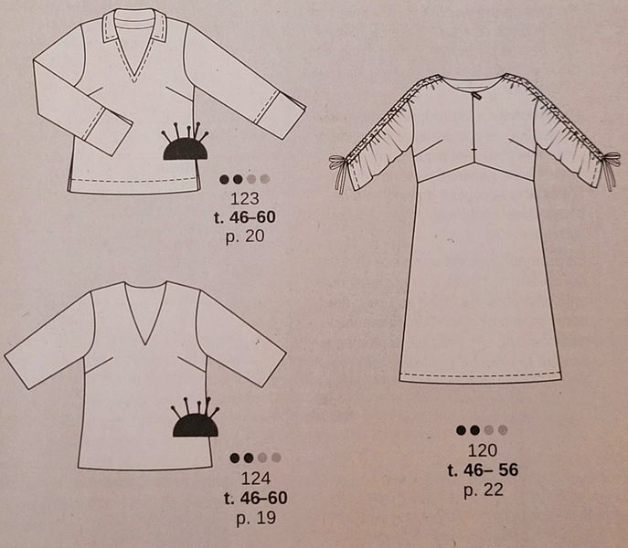 Ce numéro contient un total de 30 modèles à coudre, dont des variantes des uns et des autres. Ce qui fait moins de 30 en chipotant un peu. Les couturières débutantes apprécient trouver des variantes pour comprendre comment les patrons peuvent être modifiés.