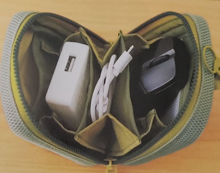 Je ne sais pas vous, mais lorsque j’emmène avec moi mon chargeur de téléphone et son câble, ils sont en vrac dans mon sac. Pareil pour la souris sans fil et le chargeur de mon pc portable. Cette petite trousse carré est parfaite pour tout ranger. Elle se ferme à l’aide d’une fermeture à glissière.