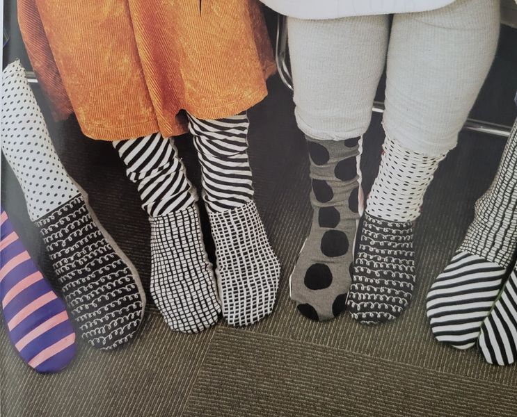 Je suis une grande fan des chaussettes sur mesures et dépareillée. Il est génial d’accepter et d’assumer ce côté graphique et original. En plus cela permet d’utiliser toutes les chutes de tissus. Je trouve que le résultat est réussi.