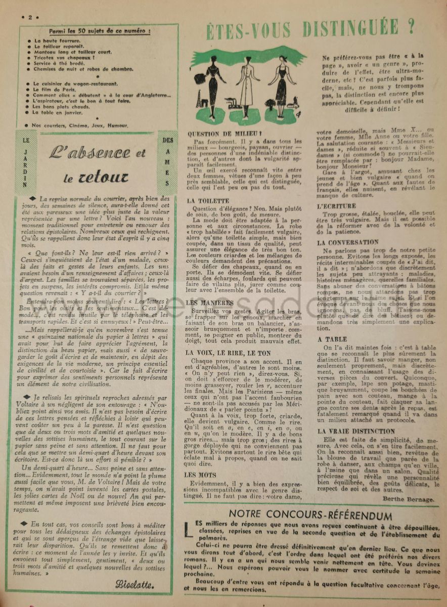 Cette revue offrait un espace d’échange, de conseils et d’entraide, particulièrement important à une époque où l’accès à l’information pour les femmes était limité.