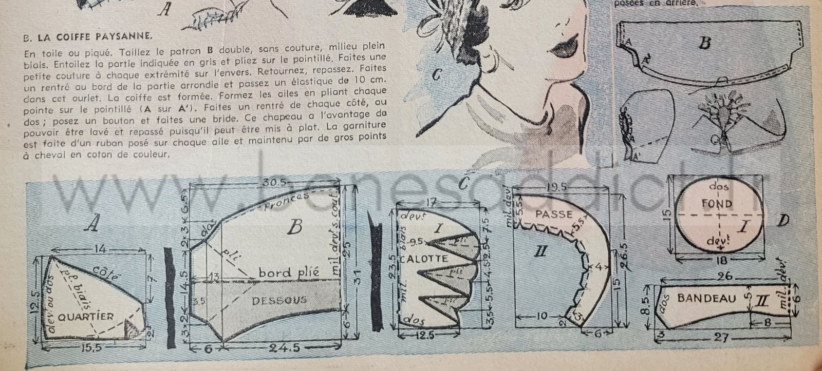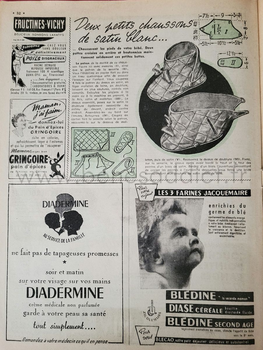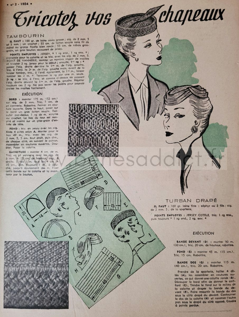 Ce magazine était connu pour ses patrons de couture permettant aux femmes et mère de famille de confectionner vêtements et accessoires pour elles et leurs enfants. Ici vous trouverez des chapeaux, mais aussi des vêtements, ainsi que des chaussons pour enfant.