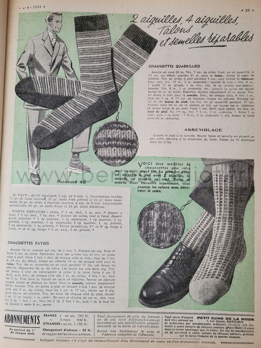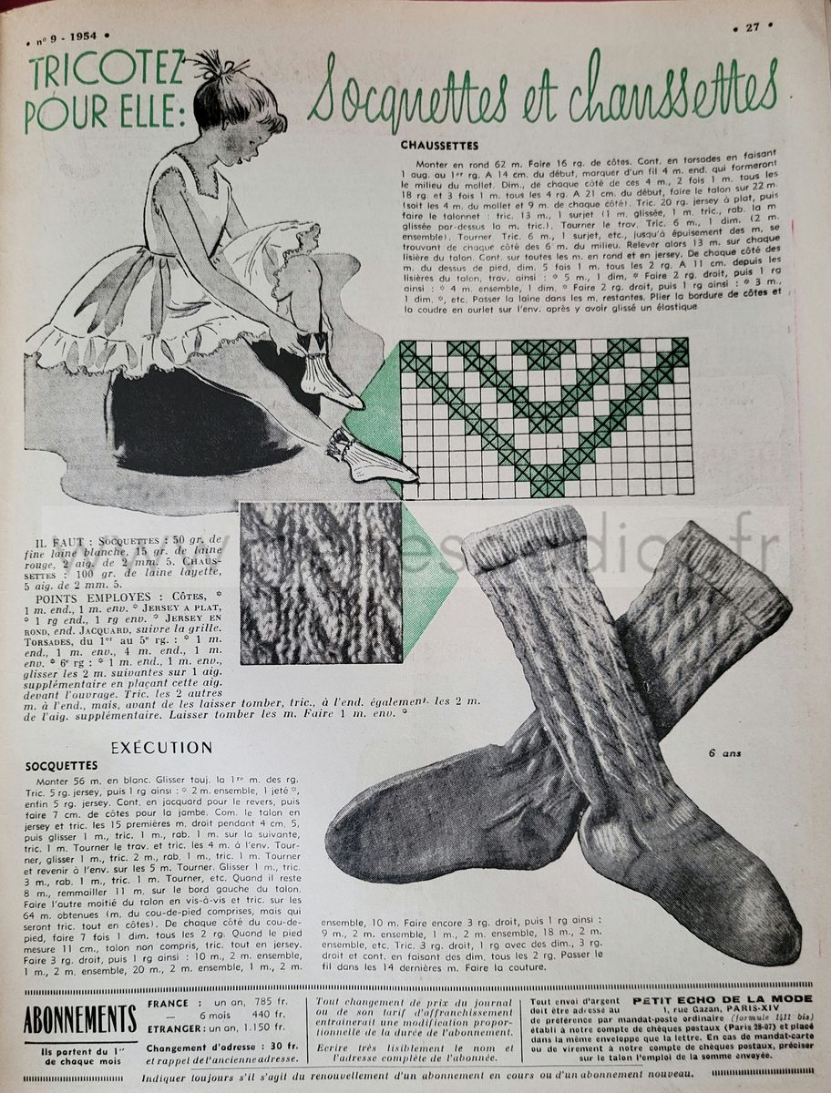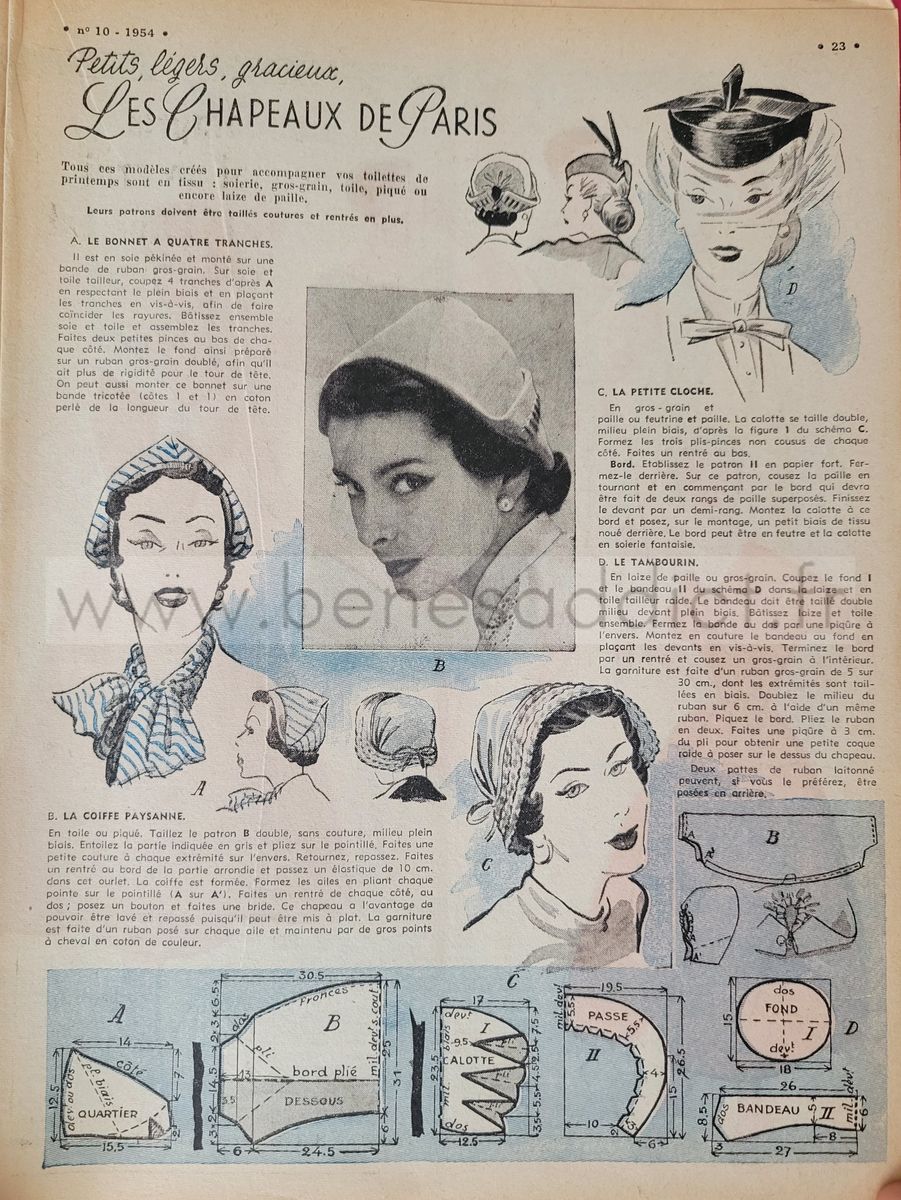 Ce magazine était connu pour ses patrons de couture permettant aux femmes et mère de famille de confectionner vêtements et accessoires pour elles et leurs enfants. Ici vous trouverez des chapeaux, mais aussi des vêtements, ainsi que des chaussons pour enfant.