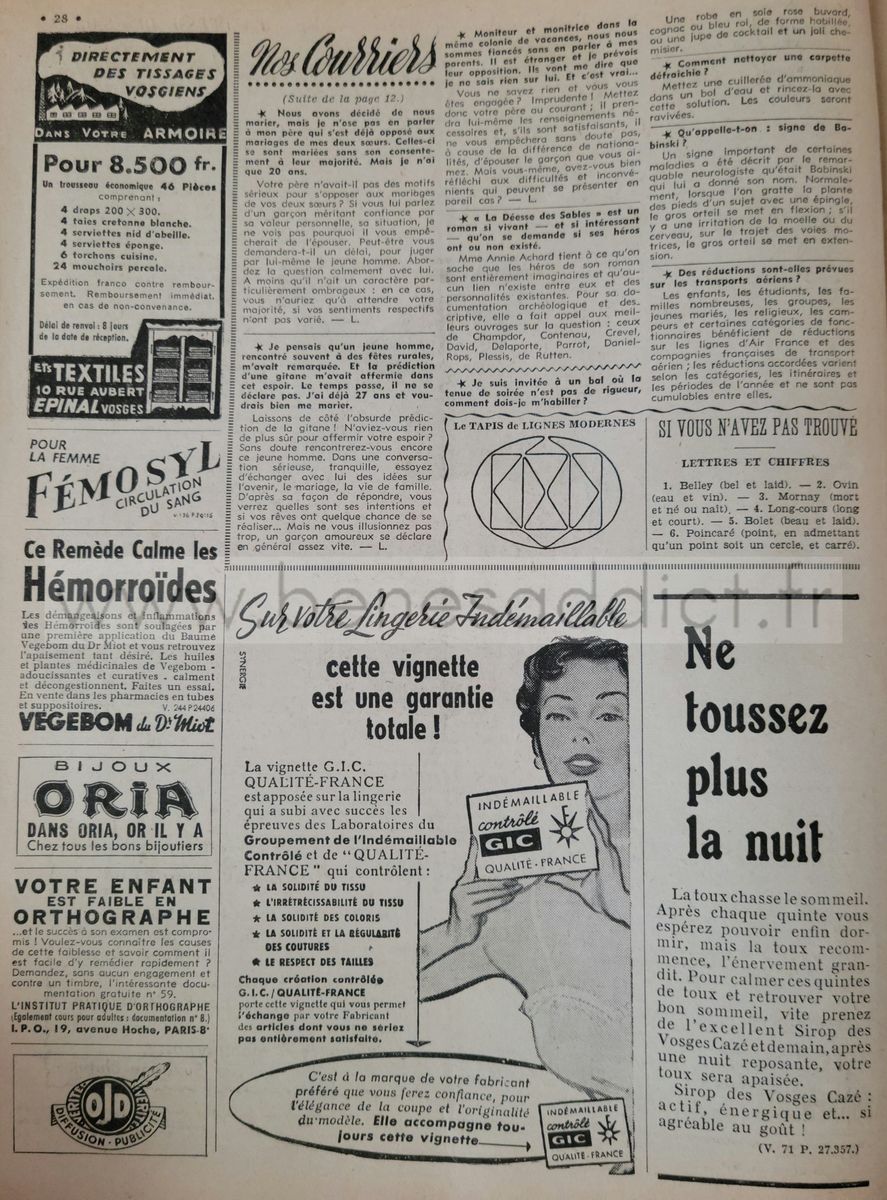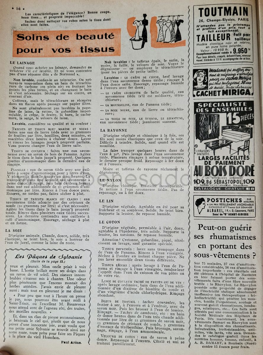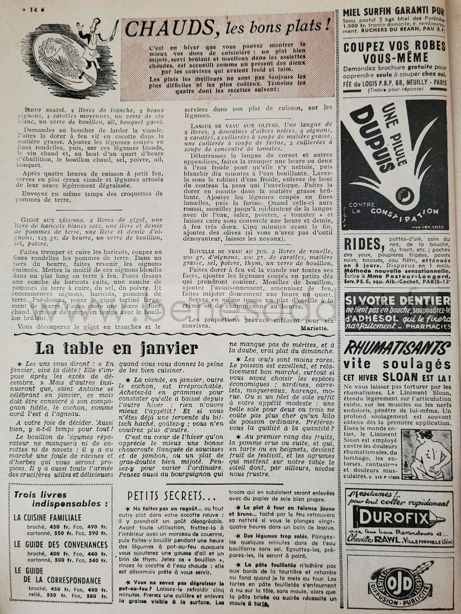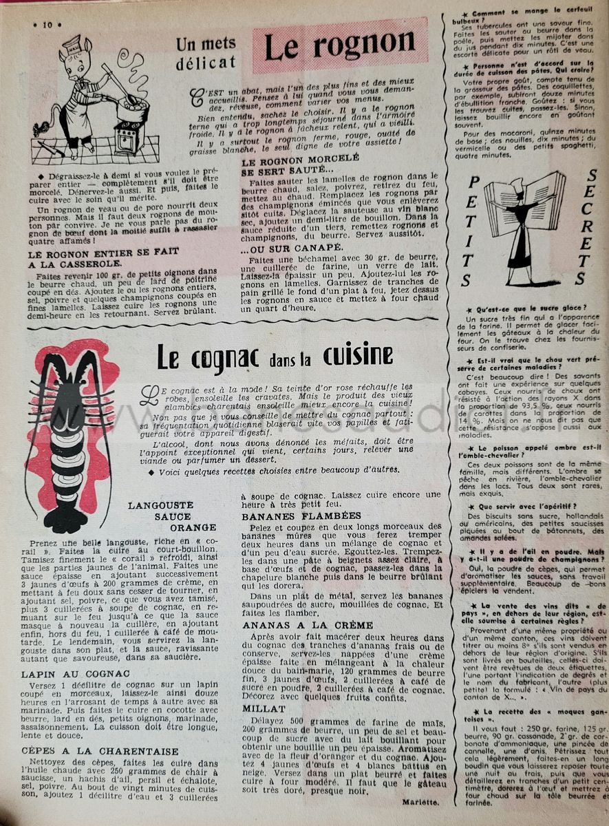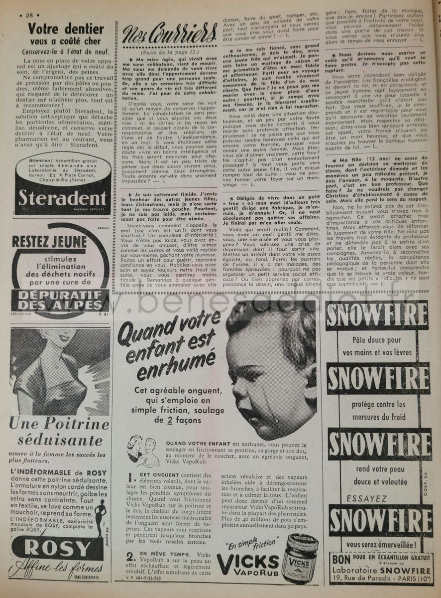 Le magazine comportait aussi des réclames qui informaient sur les produits et services de l’époque. Elles permettent de donner un aperçu du quotidien et des aspirations des femmes et des mères de familles.