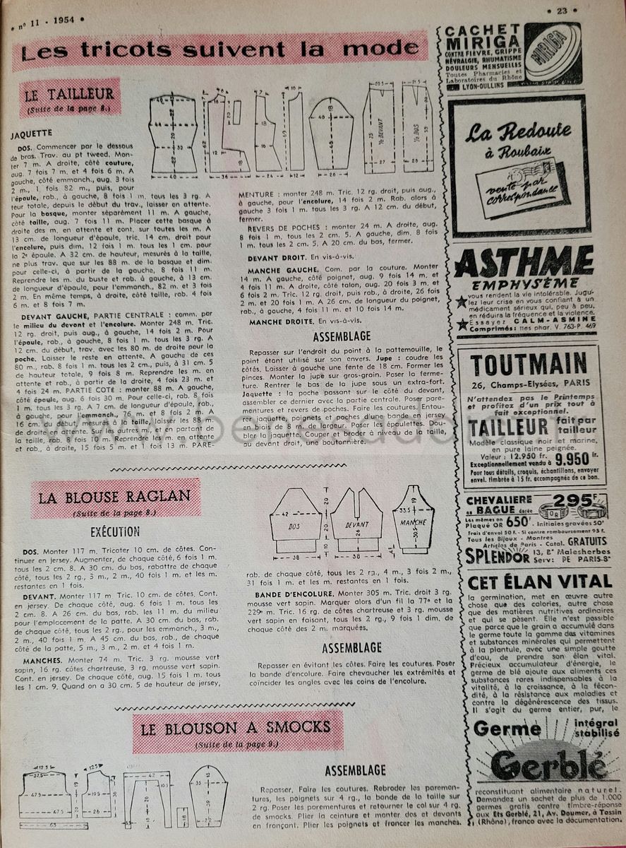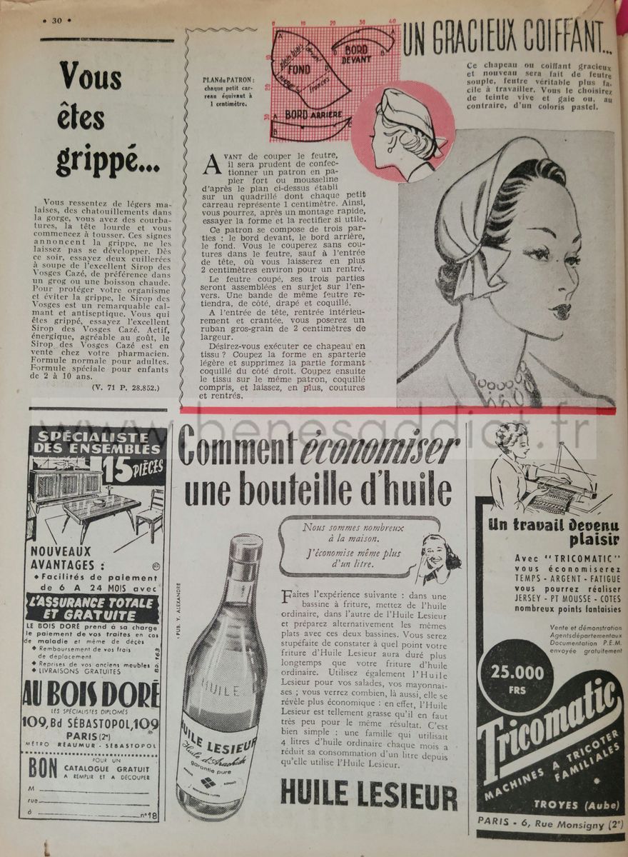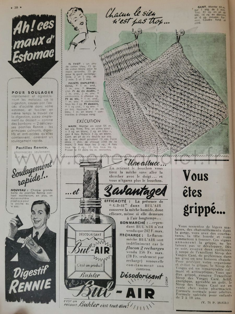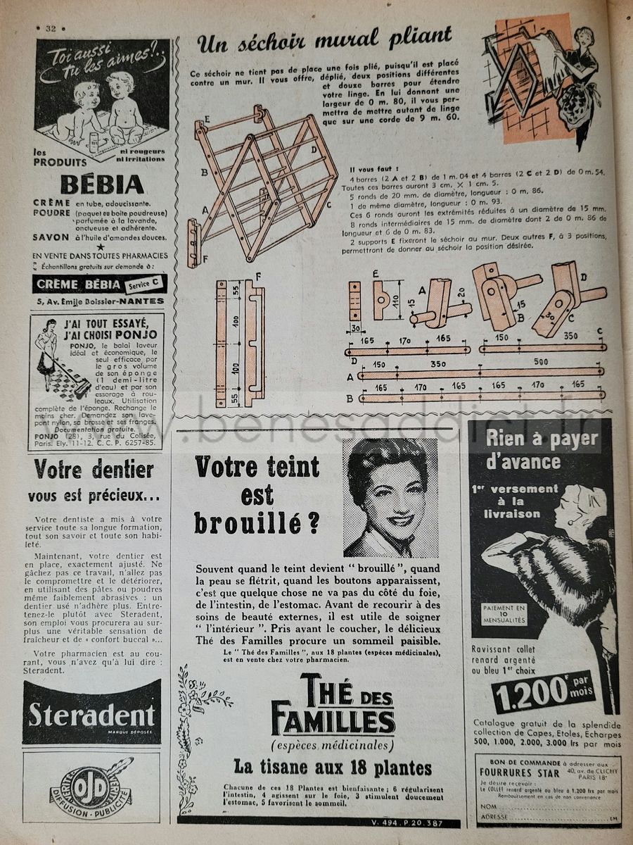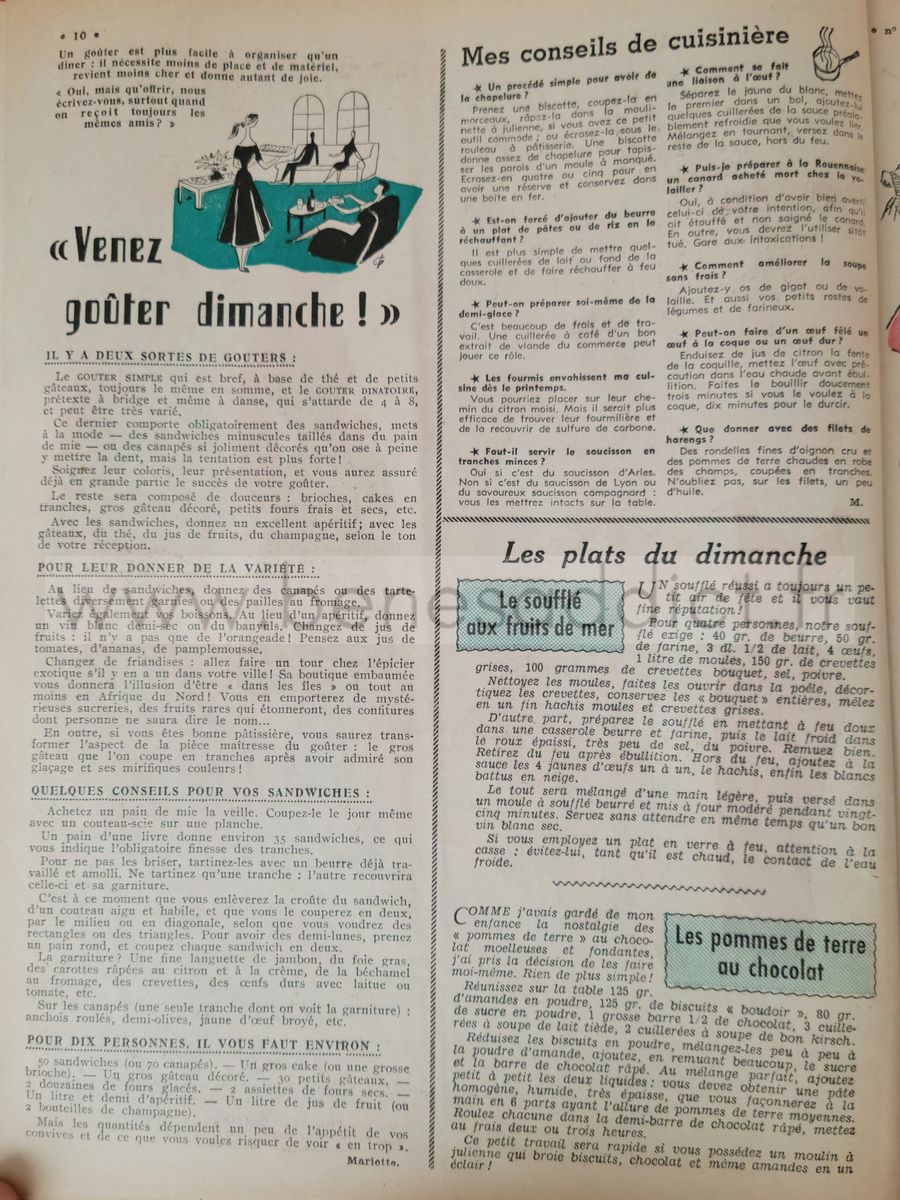 On y trouvait aussi des modèles de tricot, tout comme du crochet et même des petits meubles à faire fabriquer par son mari. Cela reflète l’ampleur du « Faire soi-même » des années 50 et dans tous les domaines. Par un souci d’économie tout comme de praticité.