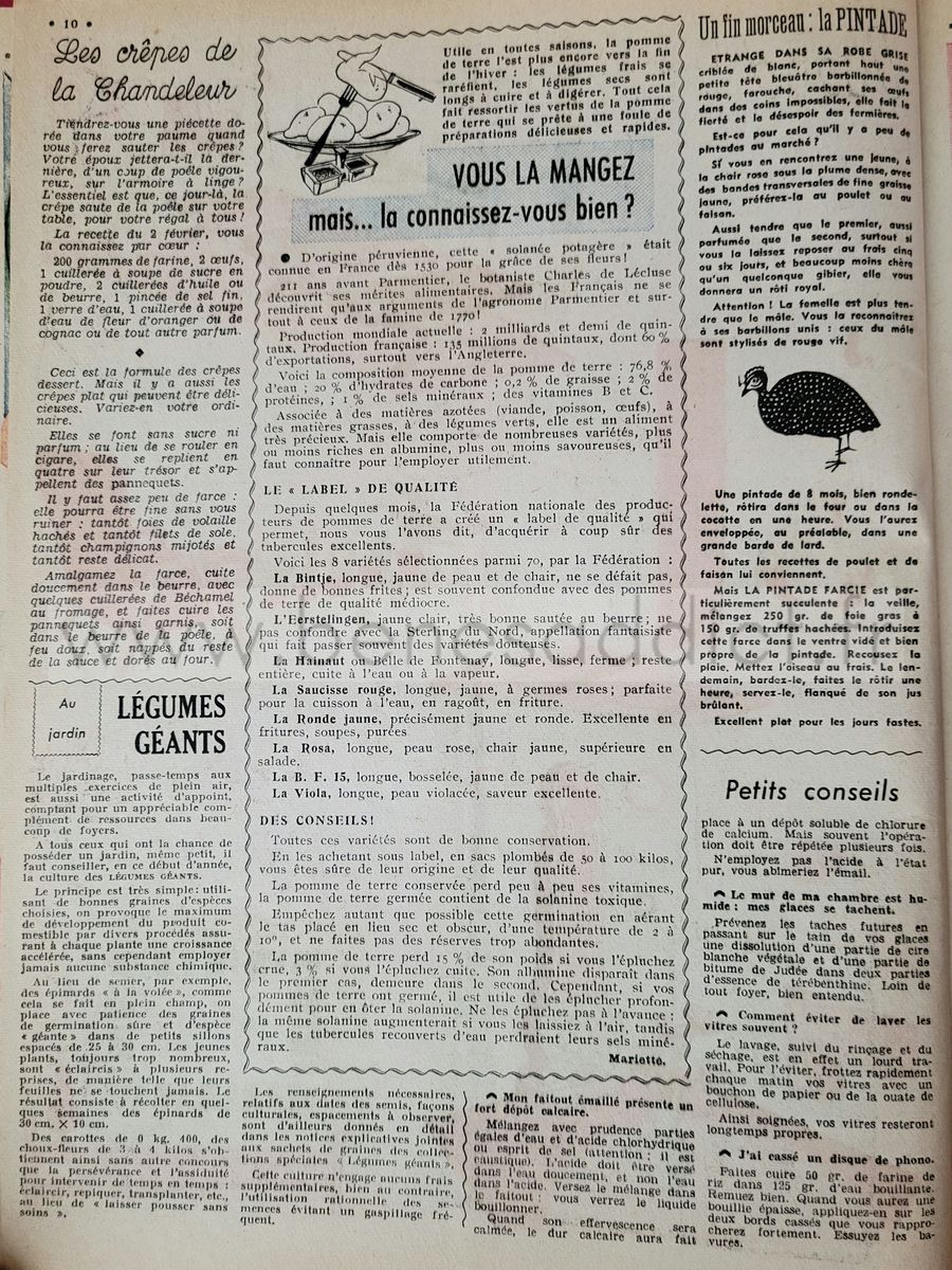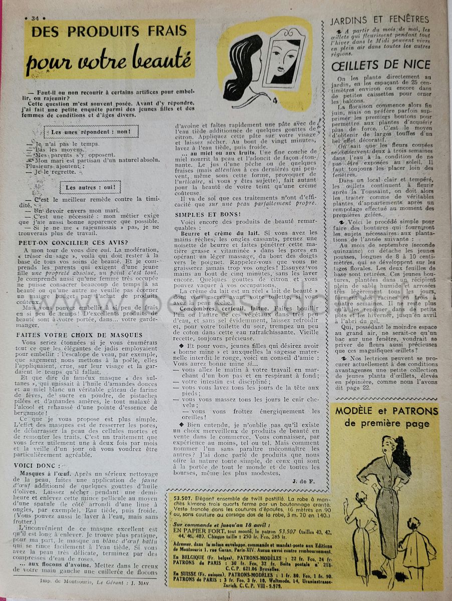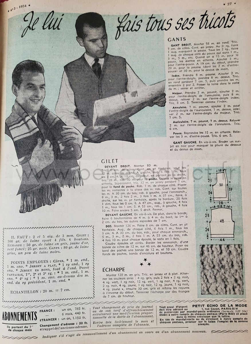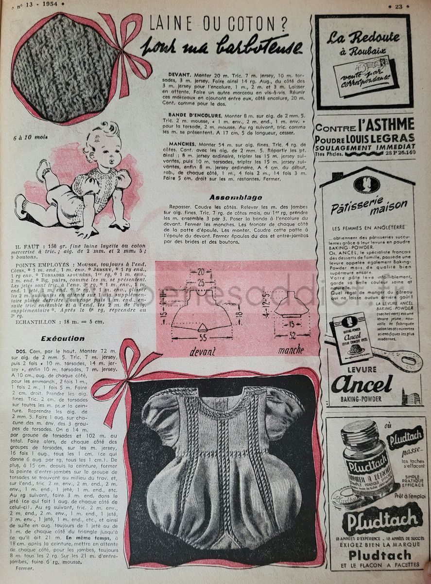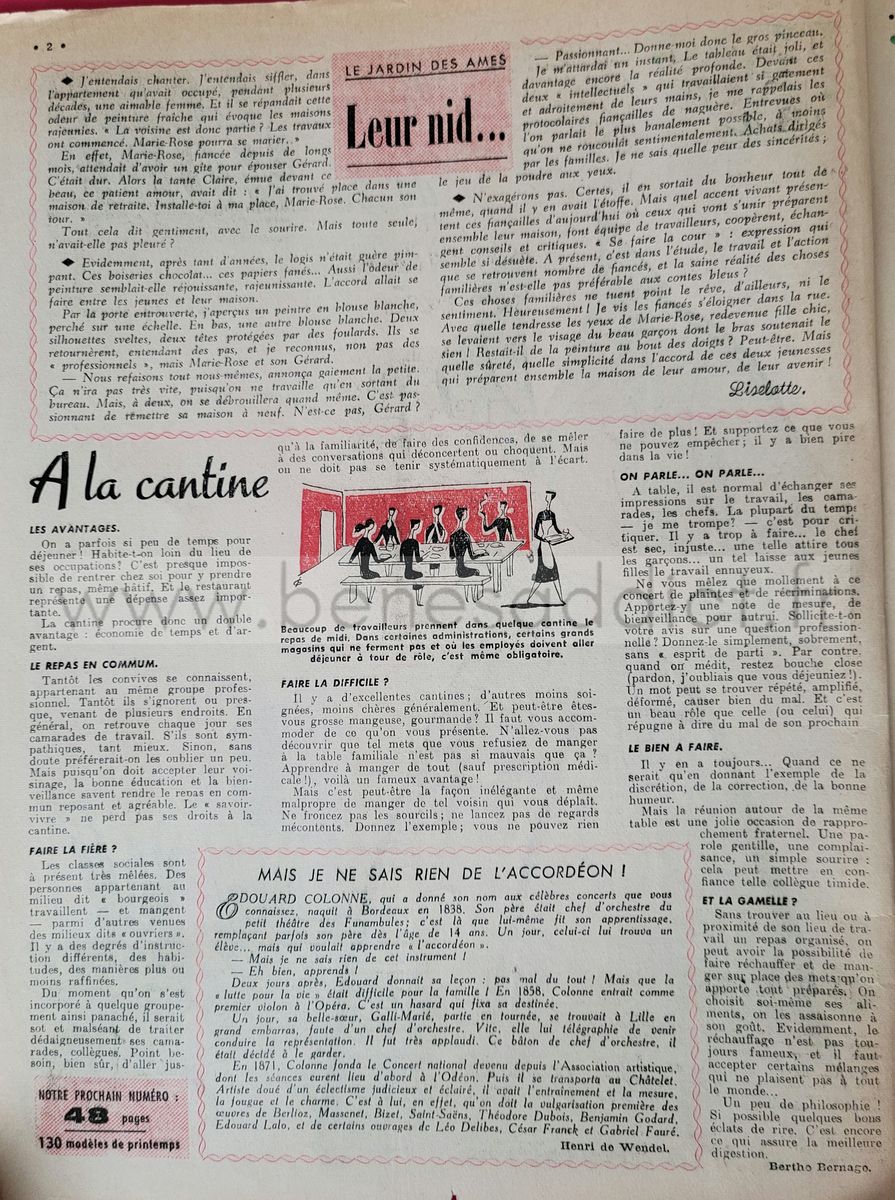 On y trouvait aussi des modèles de tricot, tout comme du crochet et même des petits meubles à faire fabriquer par son mari. Cela reflète l’ampleur du « Faire soi-même » des années 50 et dans tous les domaines. Par un souci d’économie tout comme de praticité.