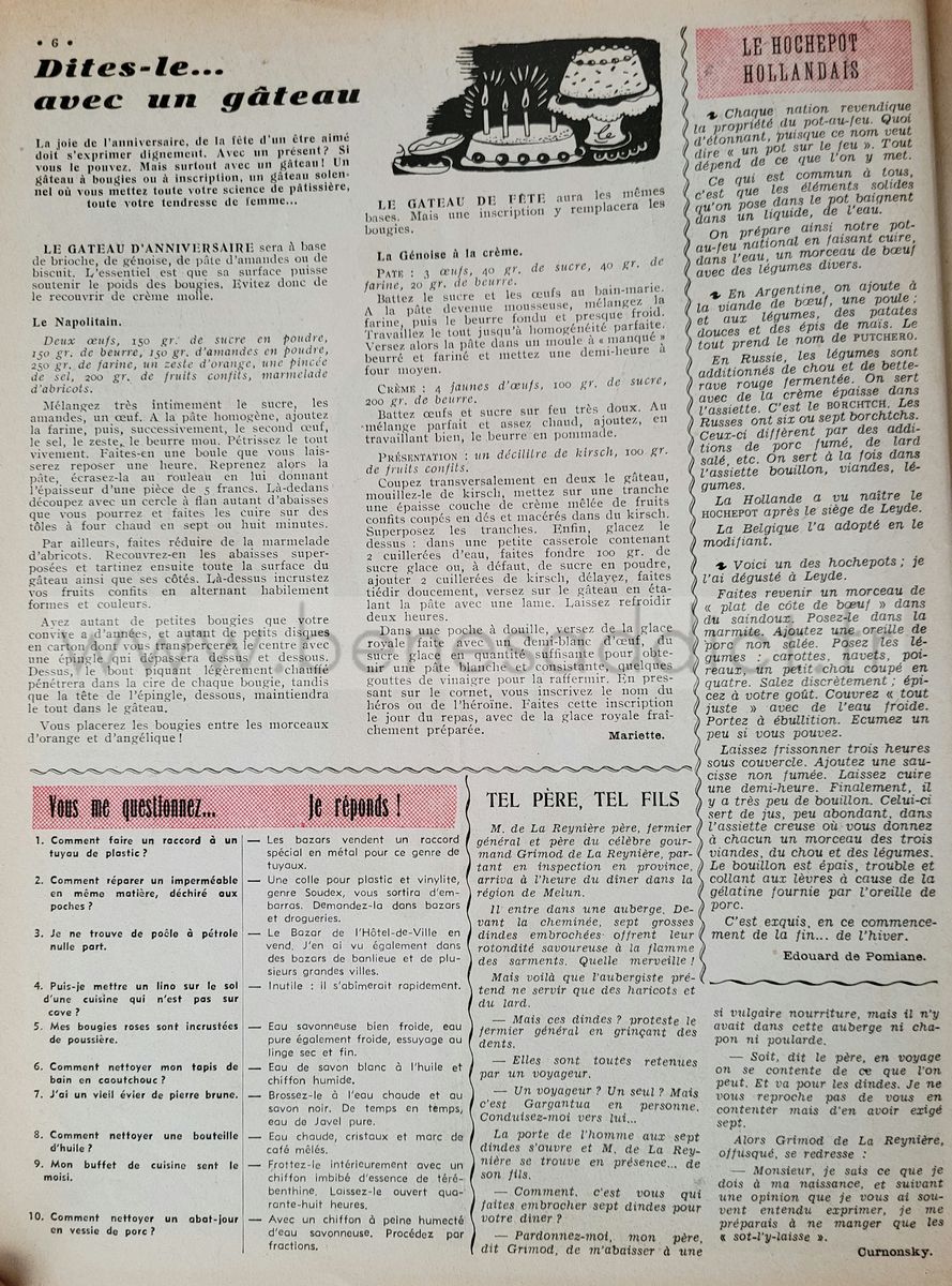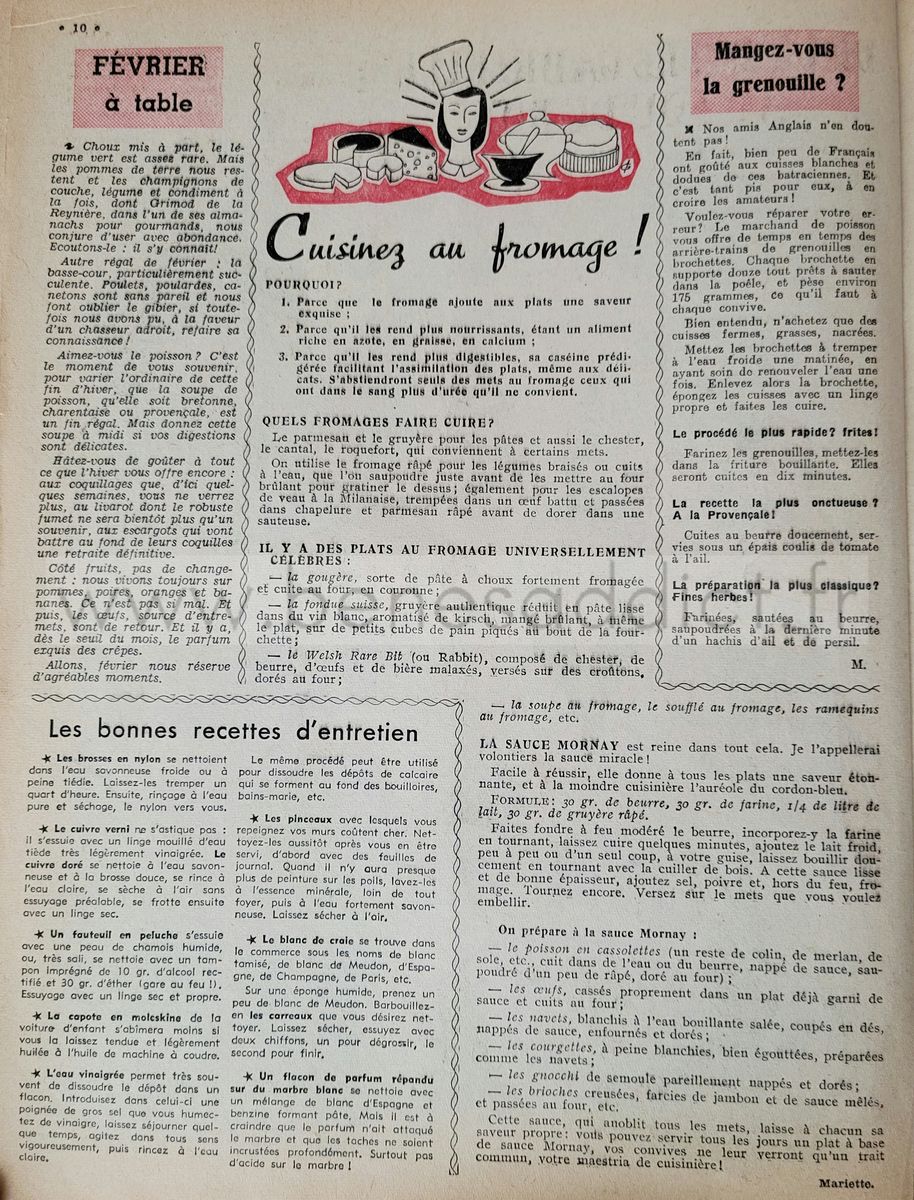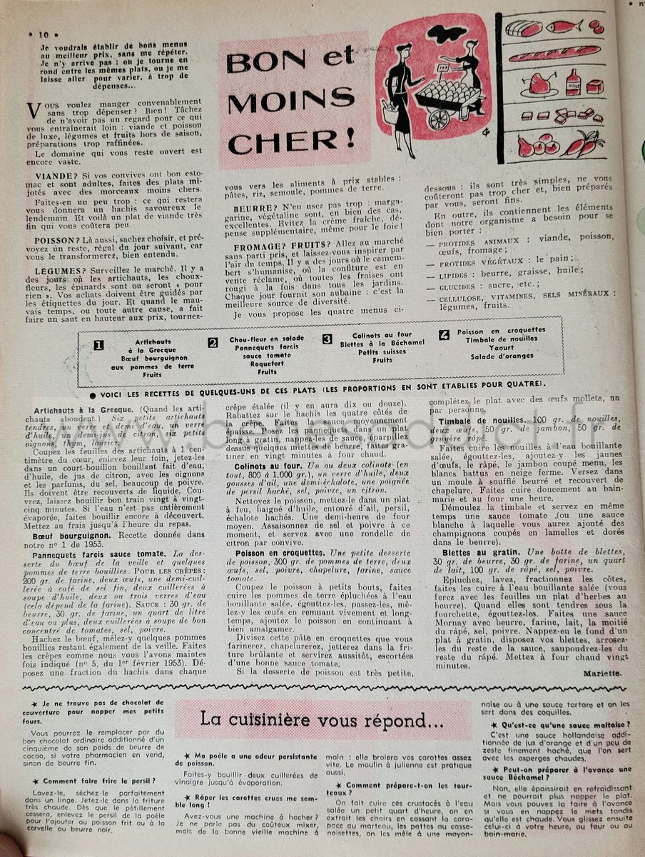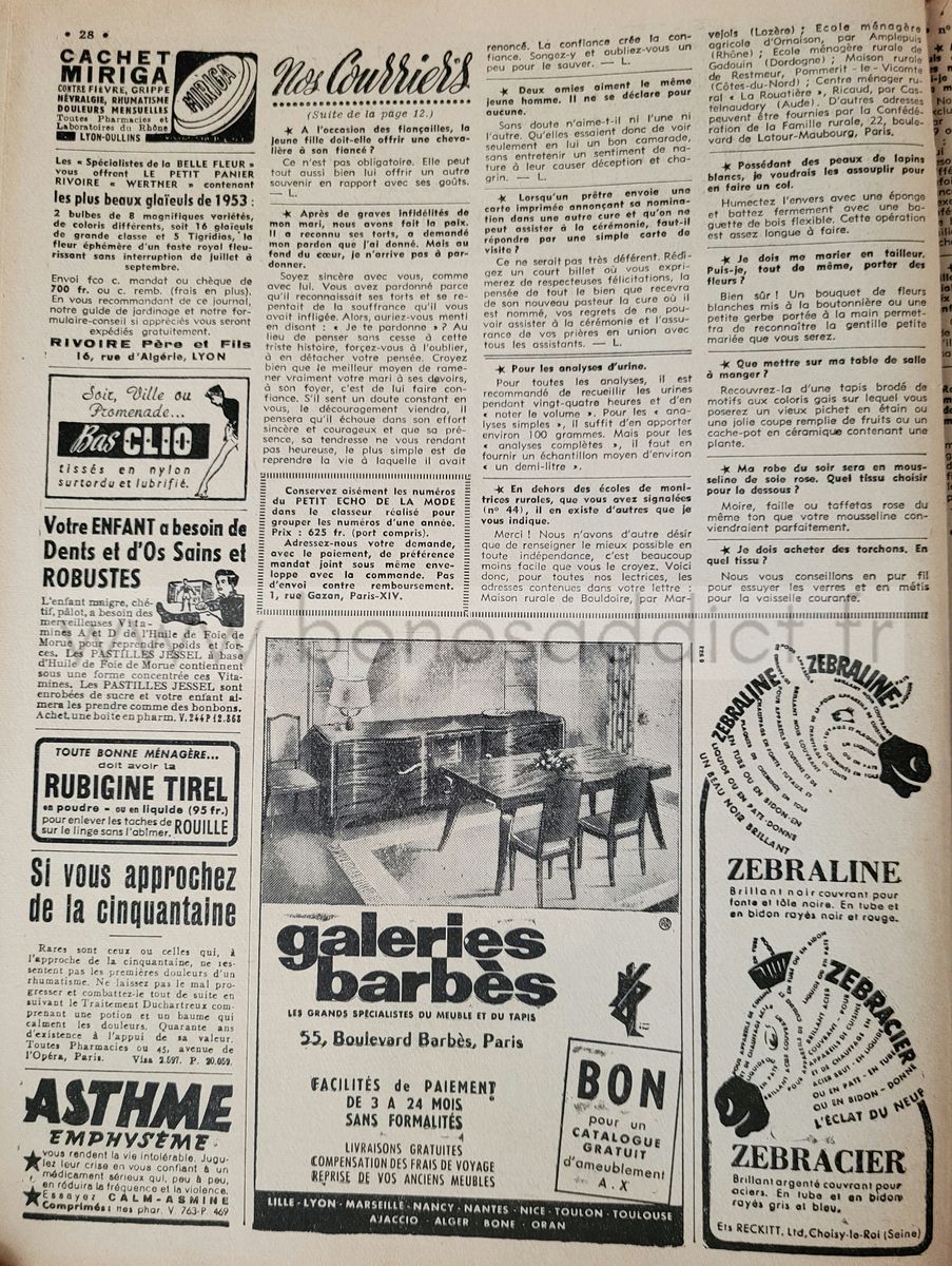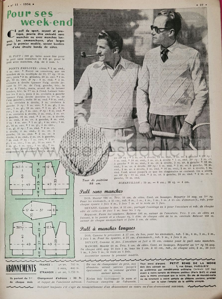 On y trouvait aussi des modèles de tricot, tout comme du crochet et même des petits meubles à faire fabriquer par son mari. Cela reflète l’ampleur du « Faire soi-même » des années 50 et dans tous les domaines. Par un souci d’économie tout comme de praticité.