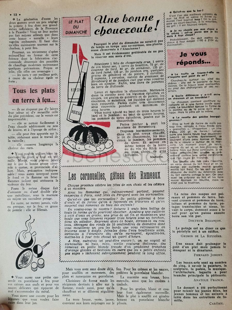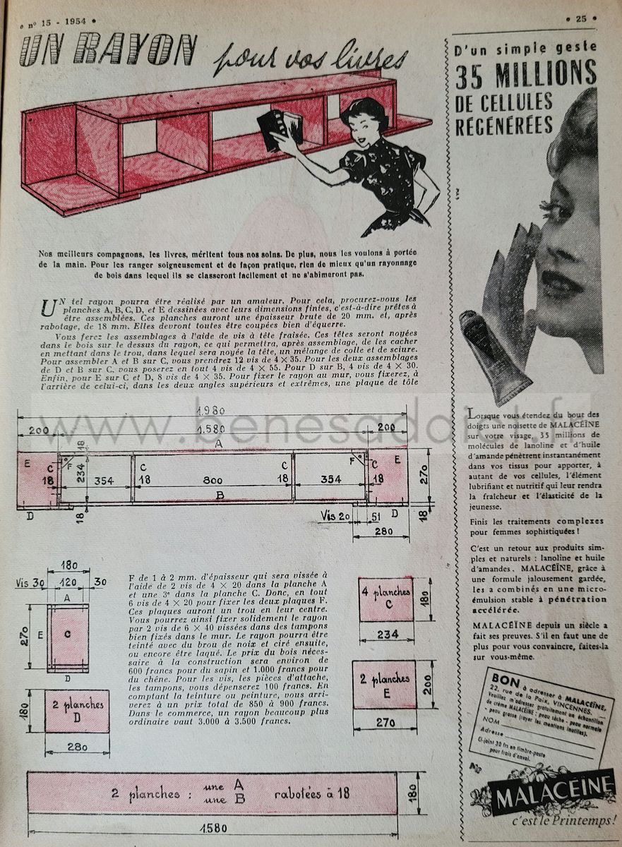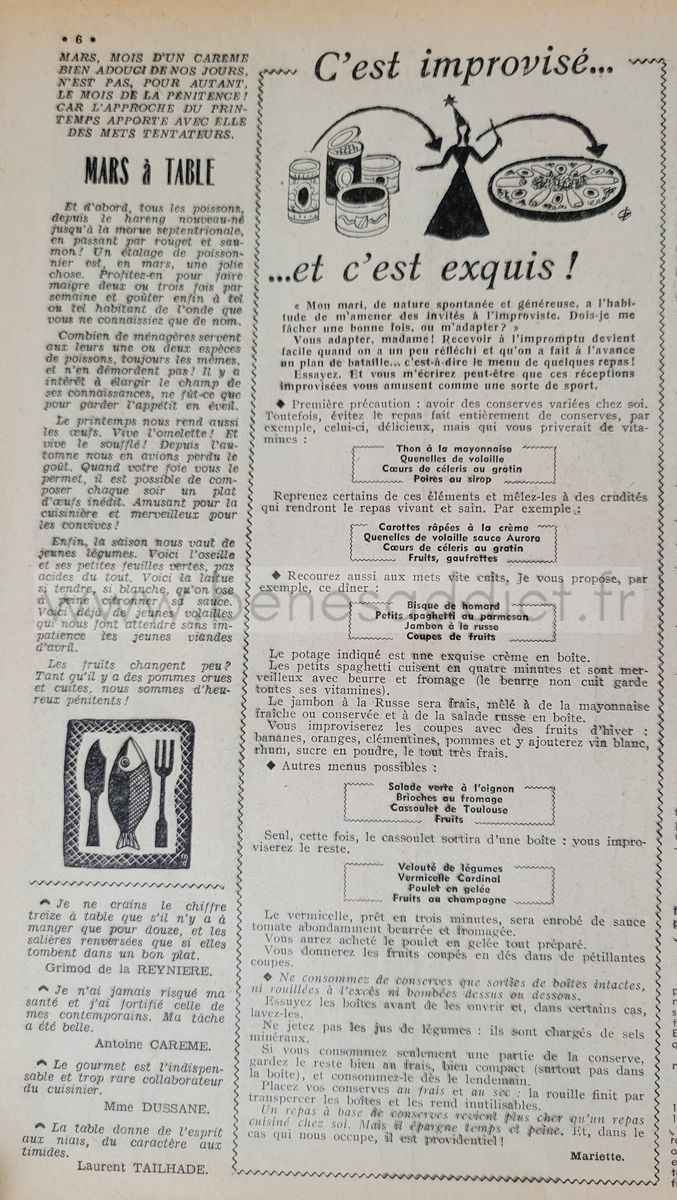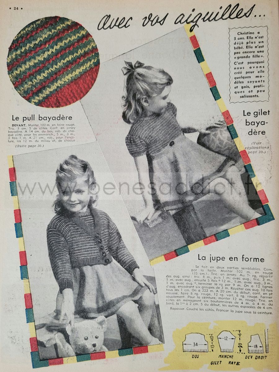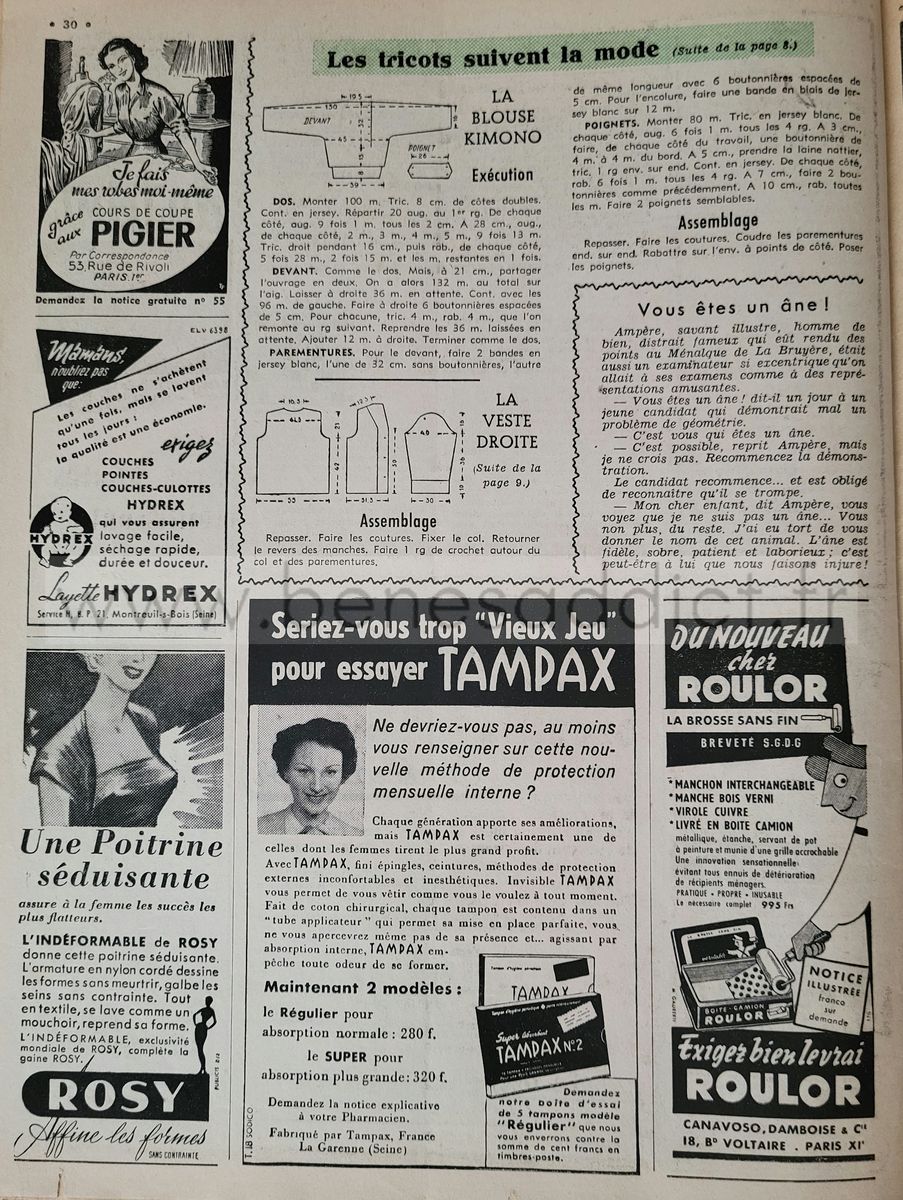 On y trouvait aussi des modèles de tricot, tout comme du crochet et même des petits meubles à faire fabriquer par son mari. Cela reflète l’ampleur du « Faire soi-même » des années 50 et dans tous les domaines. Par un souci d’économie tout comme de praticité.