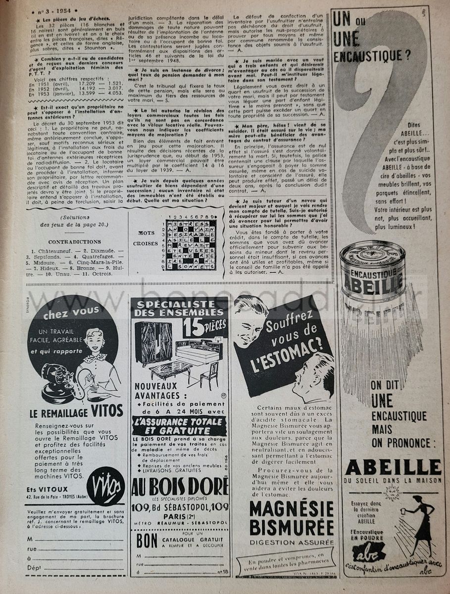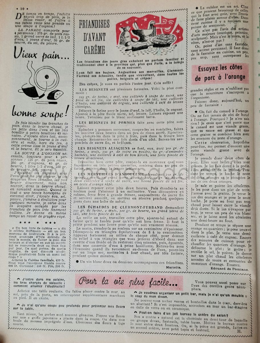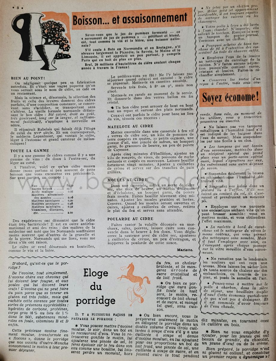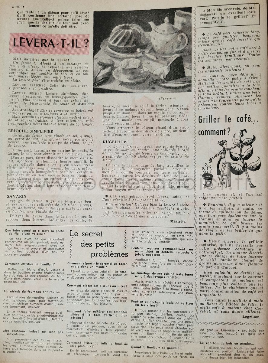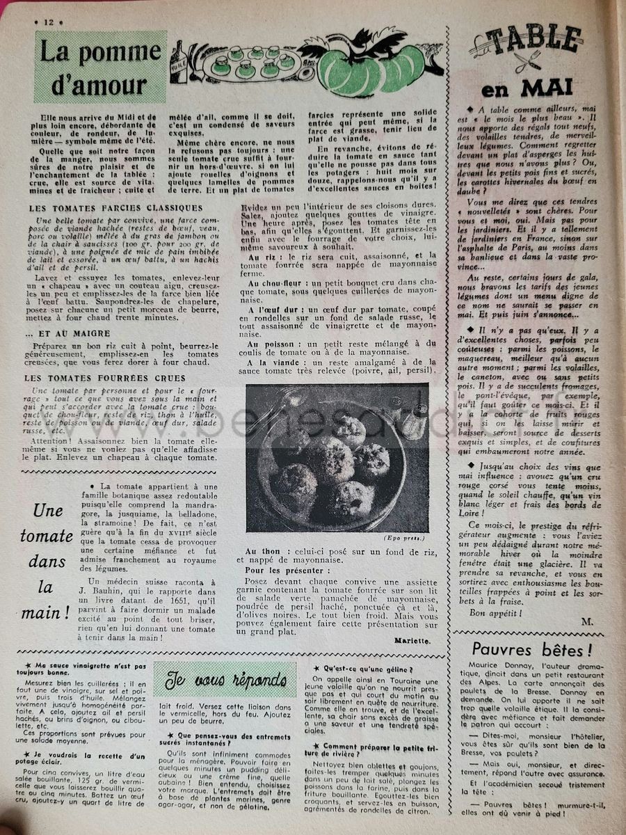 On y trouvait aussi des modèles de tricot, tout comme du crochet et même des petits meubles à faire fabriquer par son mari. Cela reflète l’ampleur du « Faire soi-même » des années 50 et dans tous les domaines. Par un souci d’économie tout comme de praticité.