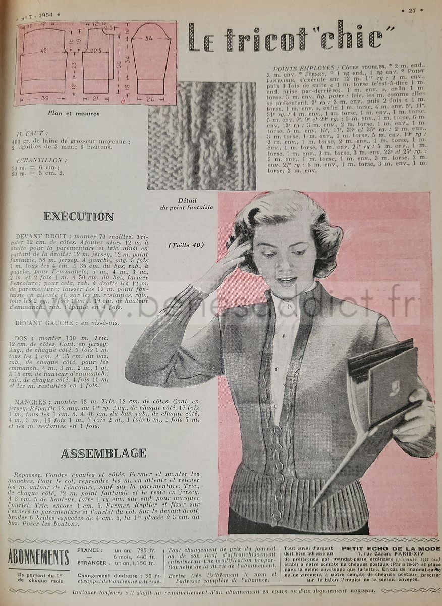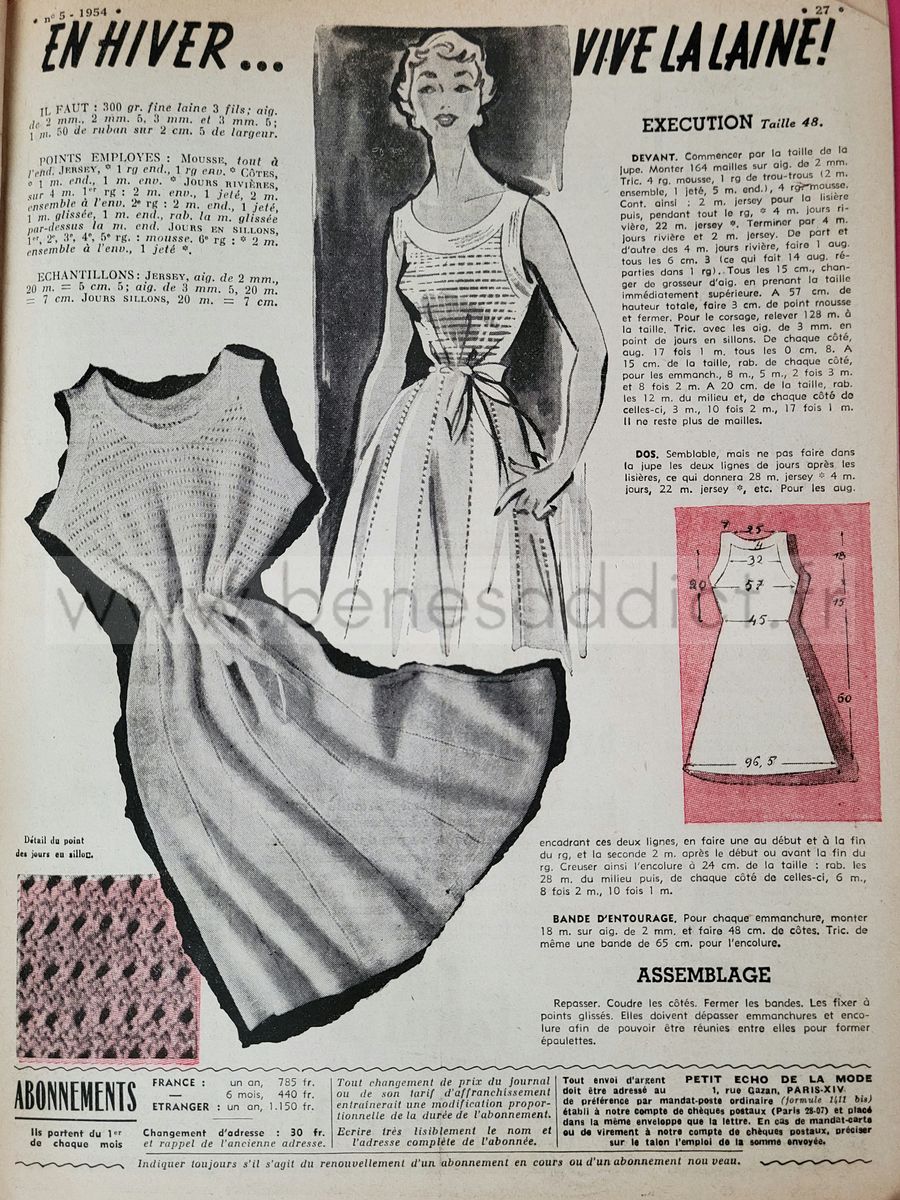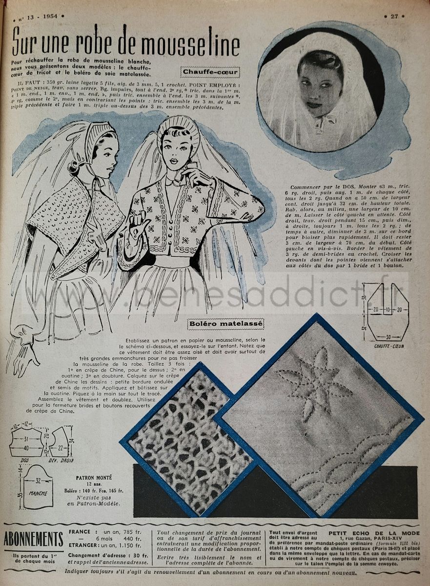 Ces 140 pages sont tirées de revues « Le Petit Echo de la Mode » datant de l’année 1954.