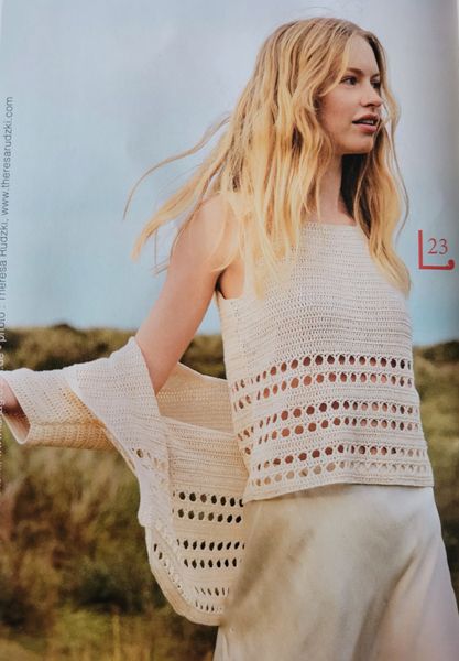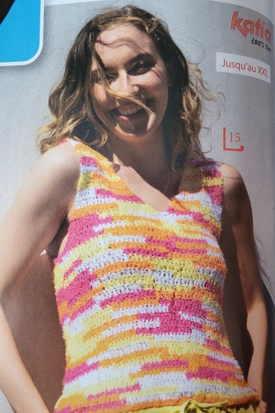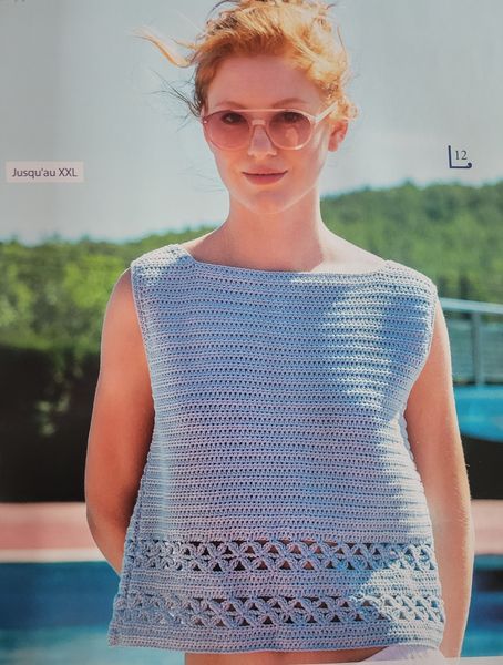 Les jours ne sont pas réservés qu’au tricot, il en existe une infinité de combinaisons comme pour ce top sans manches avec encolure bateau.
