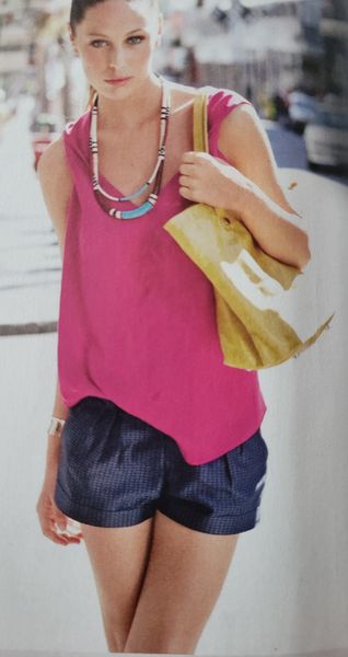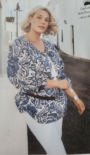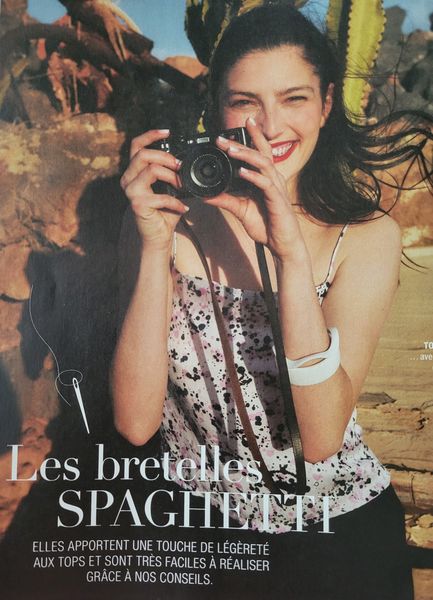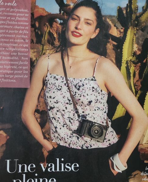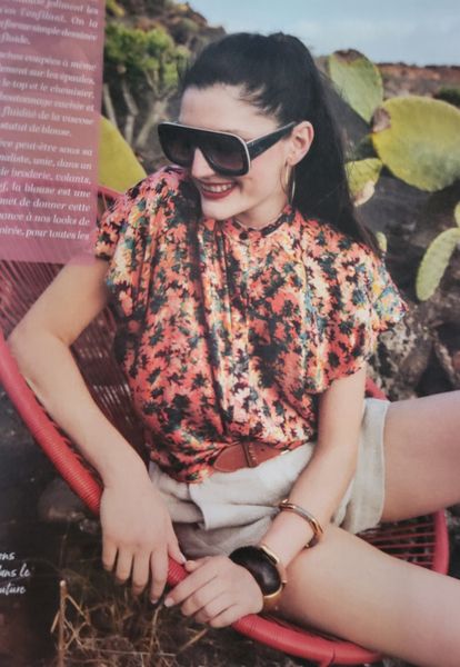 J’adore ce top à bretelle spaghettis. Il est garni d’une basque froncée. Le point de mire se trouve sur les bretelles qui sont « fleuries ».