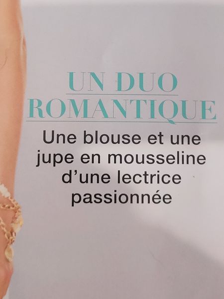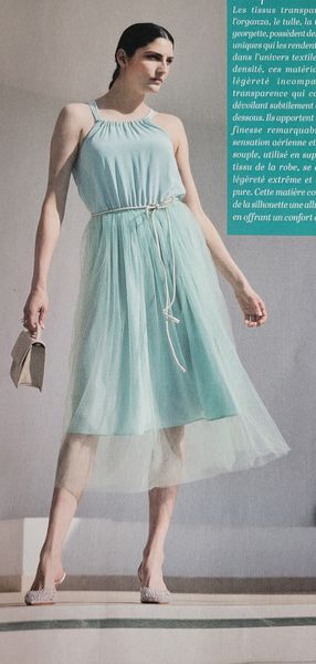 Une rubrique « modèle de lectrice » nous présente une tenue romantique réalisée en double gaze.