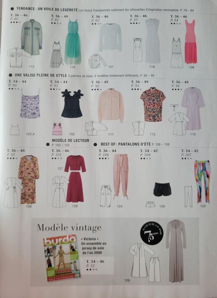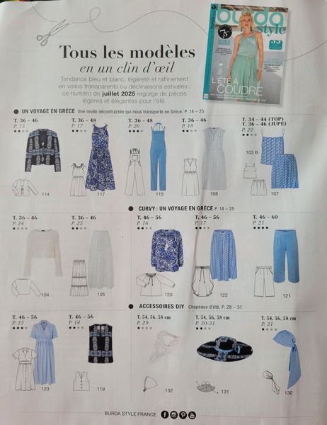 Ce numéro n’est pas indispensable même si c’est le dernier Burda paru. Un peu trop de déjà-vu. Si vous cherchez des revues qui proposent tous leurs patrons en petites et grandes tailles, regardez mers précédentes revue de presse.