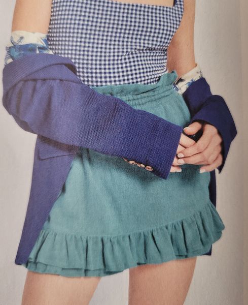 J’adore cette jupe short, avec le petit volant sur les bas de jambes, mais aussi le bas de la jupe. Elle est élastiquée pour plus de confort.