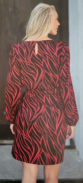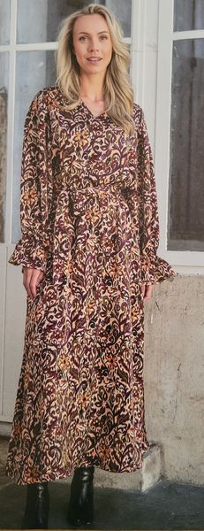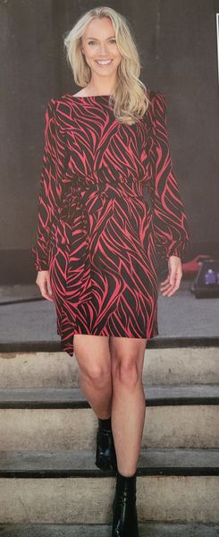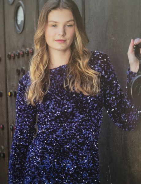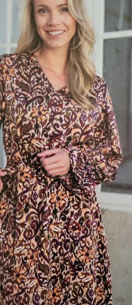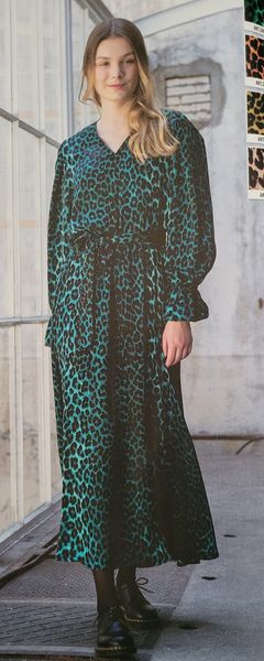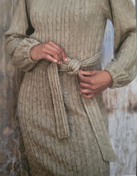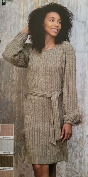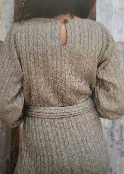 Ce genre de robe avec une encolure ronde est parfait dans les tissus ressemblants à du tricot ou du crochet. Elle comporte une encolure ronde et une goute fermée par un bouton pour la fermer dans le dos. Les manches sont longues resserrées par un élastique dans le bas.