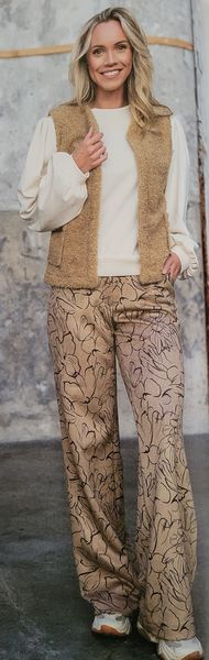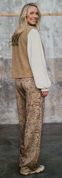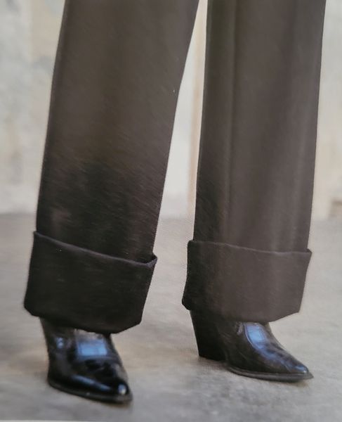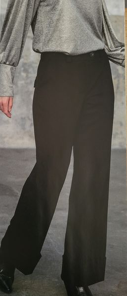 Voici un pantalon intemporel, pas trop large avec un large revers sur les jambes. Il possède des poches italiennes sur le devant et des poches à rabats sur le dos.