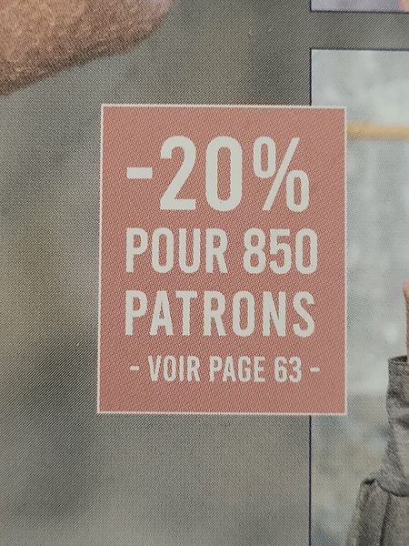 Sur la page 83 un code vous attend pour une réduction de 20 sur 850 patrons. C’est toujours bon à prendre non ? Perso je n’en achète que très rarement surtout en PDF.