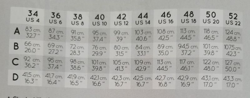 La totalité des patrons présents dans la revue ainsi que ceux à télécharger sont dans le même panel de tailles. Petites et grandes tailles, en effet elles vont du 34 au 52.