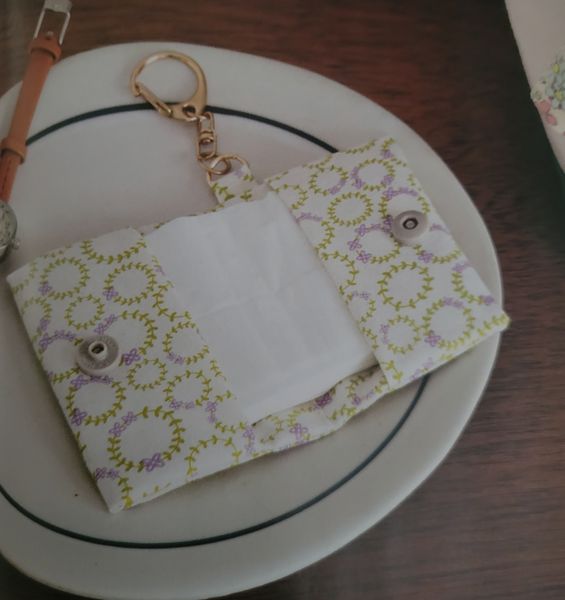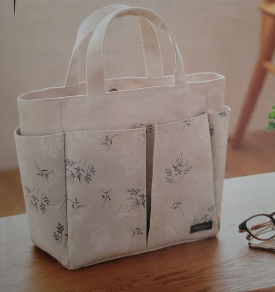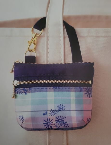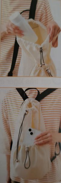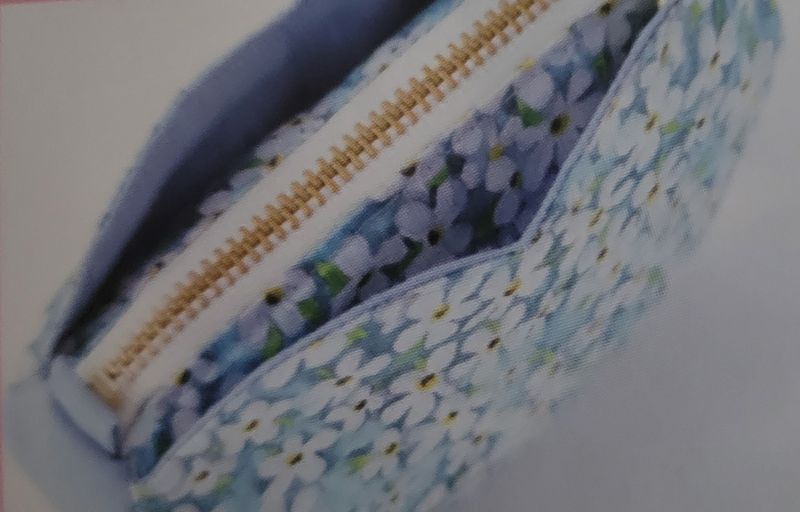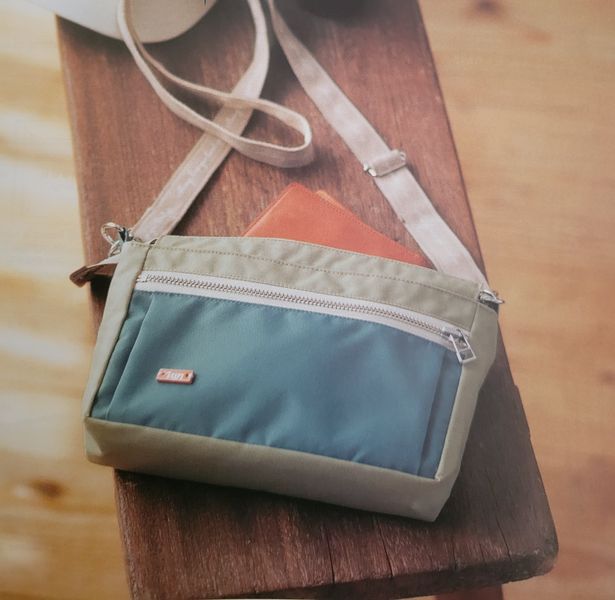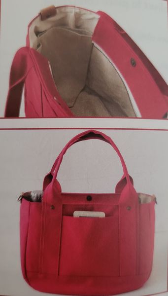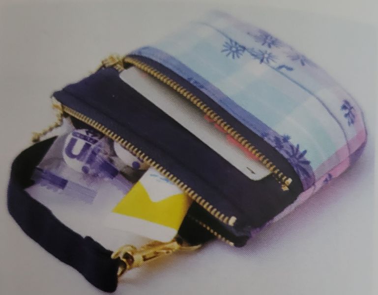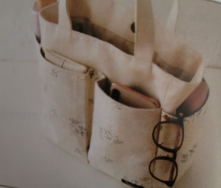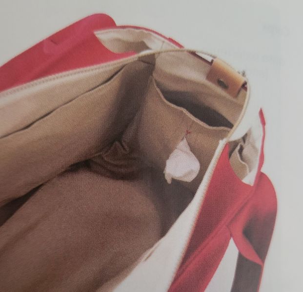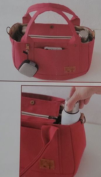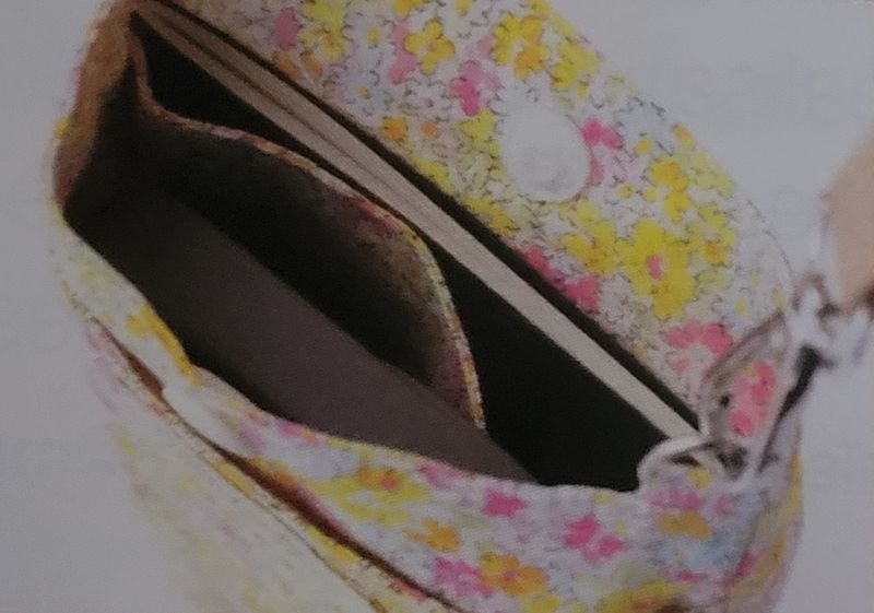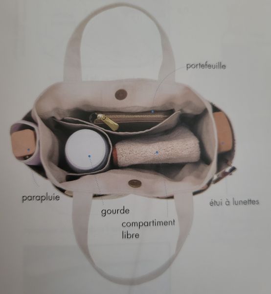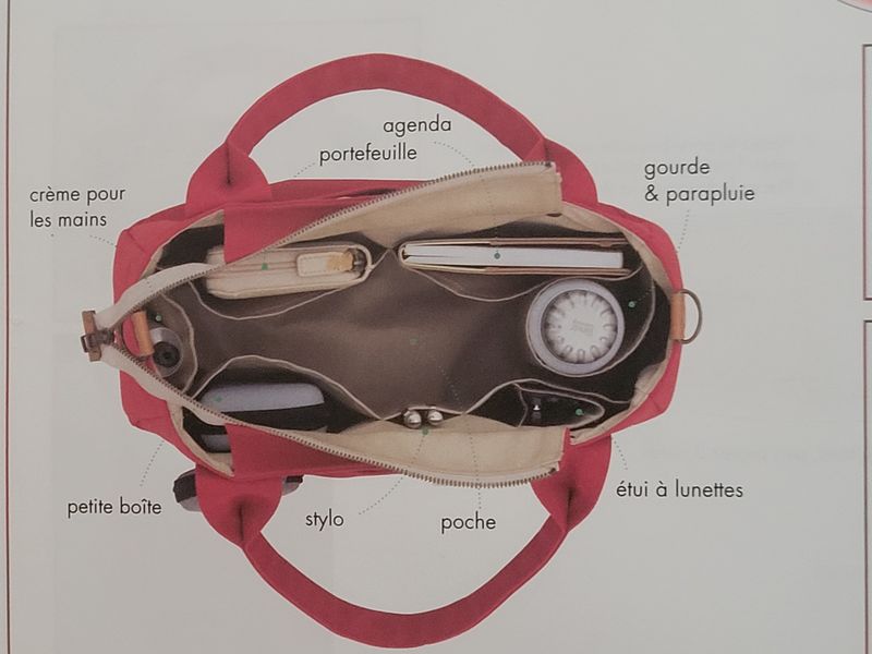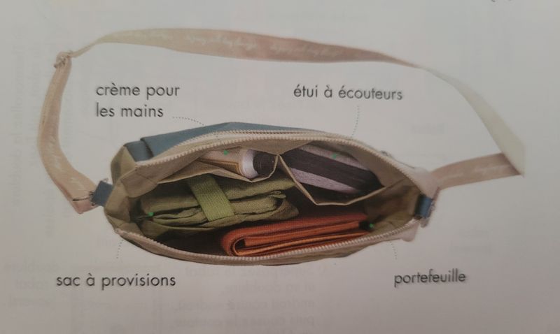 J’aime beaucoup ce sac, avec une place pour chaque chose. Même pour stoker les mouchoirs et les sortir facilement. Il se ferme à l’aide d’une fermeture à glissière et possède 2 petites anses. Il est dommage qu’il n’y ait pas de quoi coudre une bandoulière alors que c’est facile à faire.