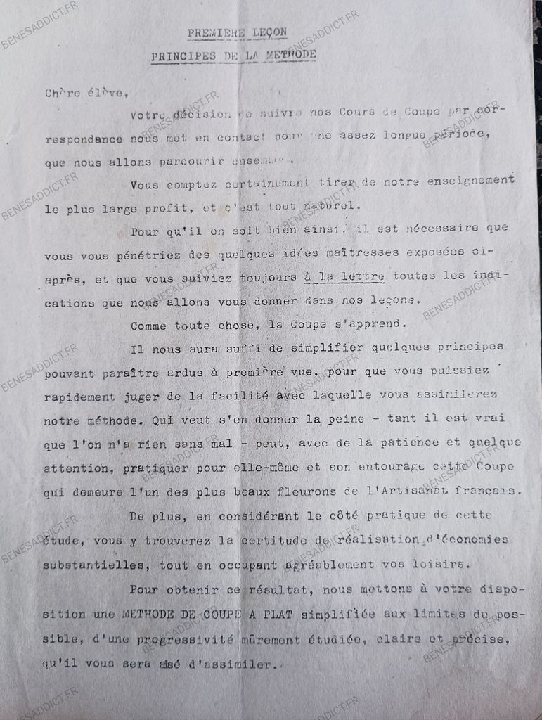 C’est dans ce contexte que fleurissent les cours de coupe à plat par correspondance, comme « Je sais couper » publié par les Éditions de la Belle Fontaine à Paris.