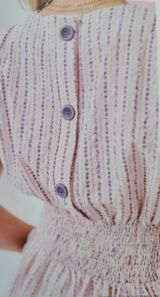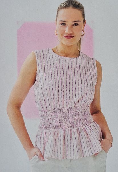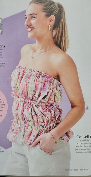 J’aime beaucoup les vêtements qui comportent une partie de smocks élastiques, c’est forcément plus confortable. Comme pour Ce top qui m’a fait penser à un cache-corset. Les smocks permettent d’avoir une basque.
