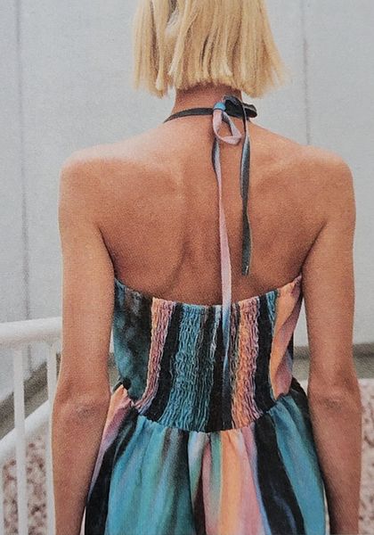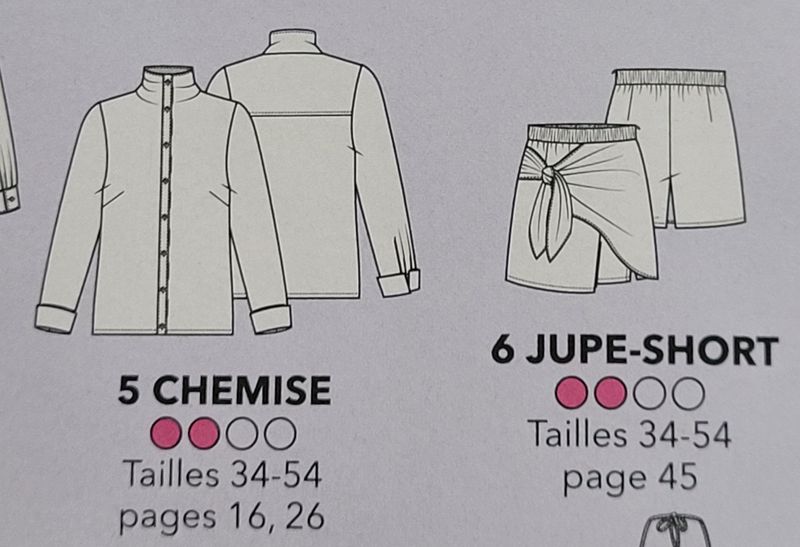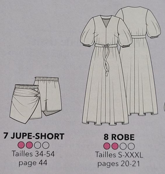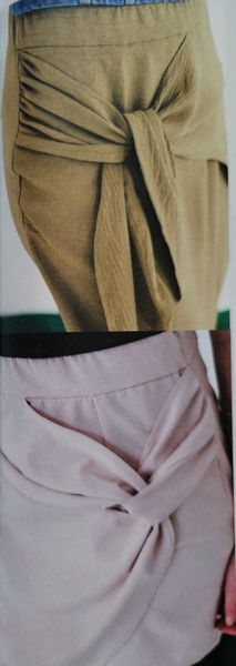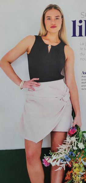 Je suis une grande fan des jupes courtes avec un short intégré. Comme ces deux modèles, ils possèdent une taille élastiquée. La variante réside dans le devant, avec la première un pan noué et croisé. La seconde, elle est twistée et drapée.