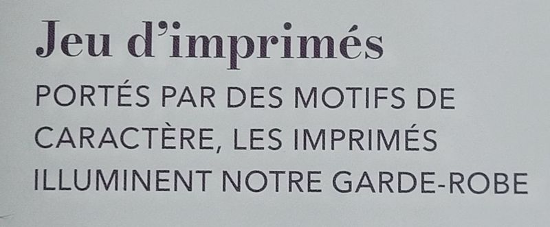 Dans ce numéro, nous avons une jolie sélection de tissus imprimés forts, du moins c’est ce que nous annonce la rédaction. Imprimés ou unis, le choix possible est immense, avec seule motivation : Se faire plaisir.