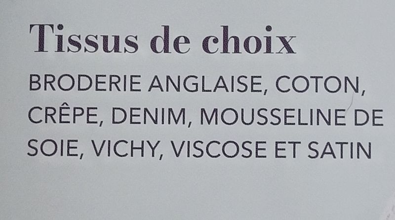 Au-delà des imprimés, le choix des matières est, lui aussi, très large, avec des broderies anglaises que je rêve de trouver en corail par exemple. Mais aussi, satin, viscose, crêpe, denim, etc.